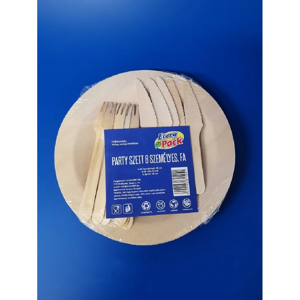 - Servierbesteck aus Holz: Partyset 6-Personen-Teller aus Naturholz + Messer + Gabel, umweltfreundliche Lösung