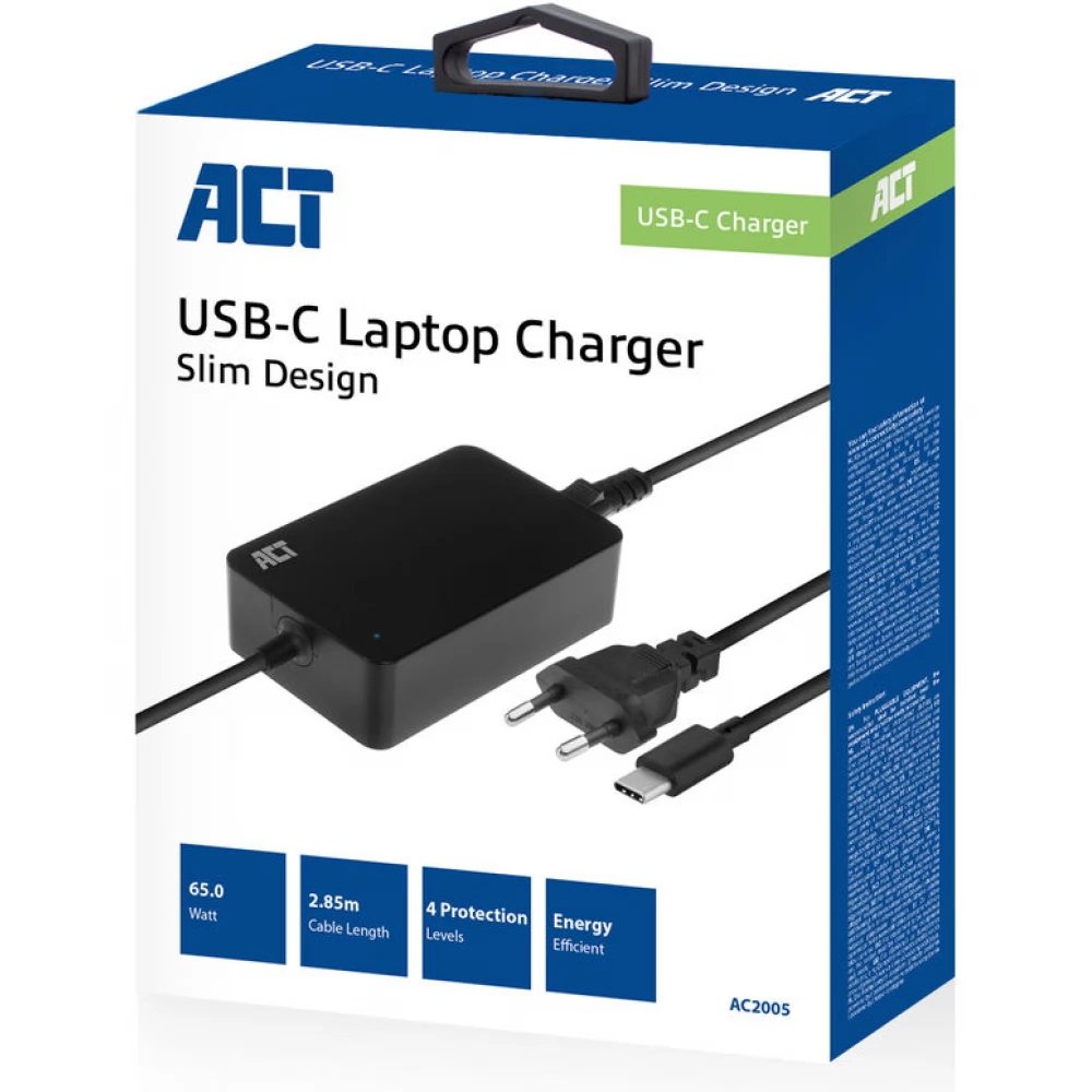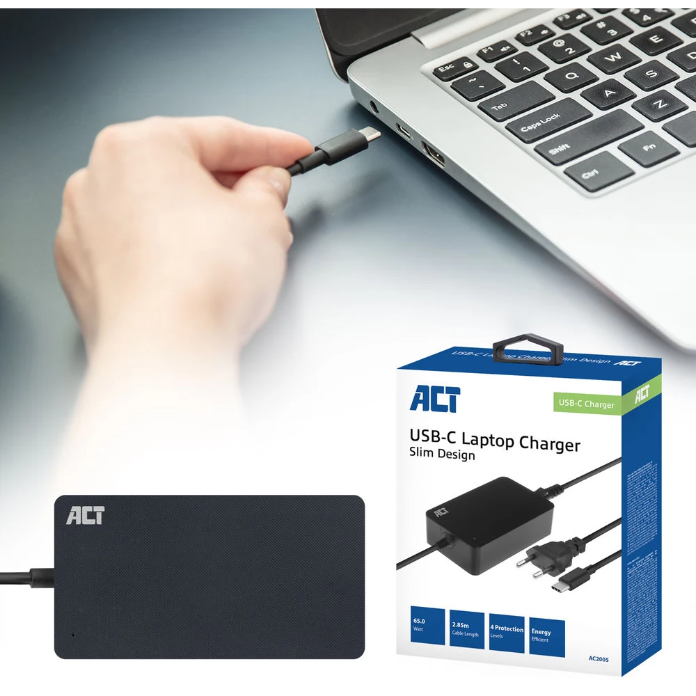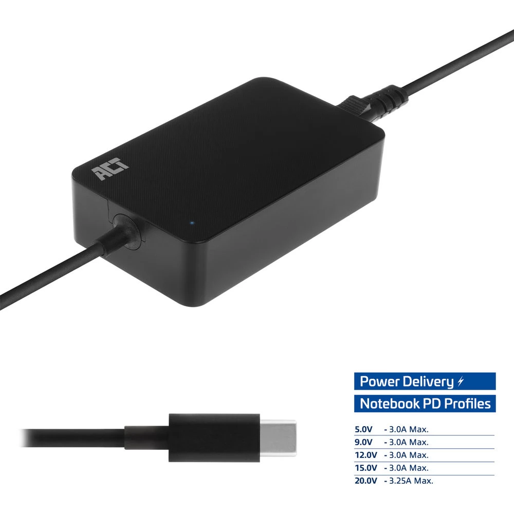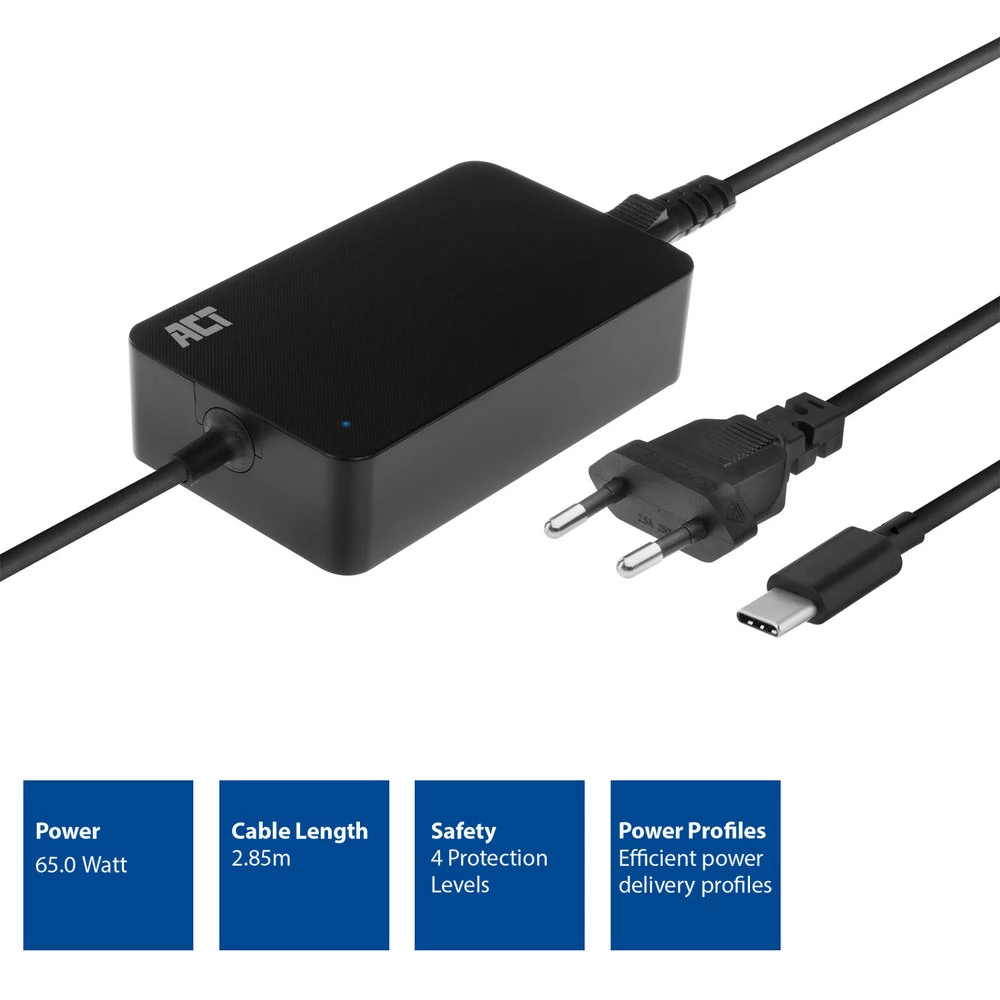 ACT CONNECTIVITY USB-C laptop charger with Power Delivery profiles 65W