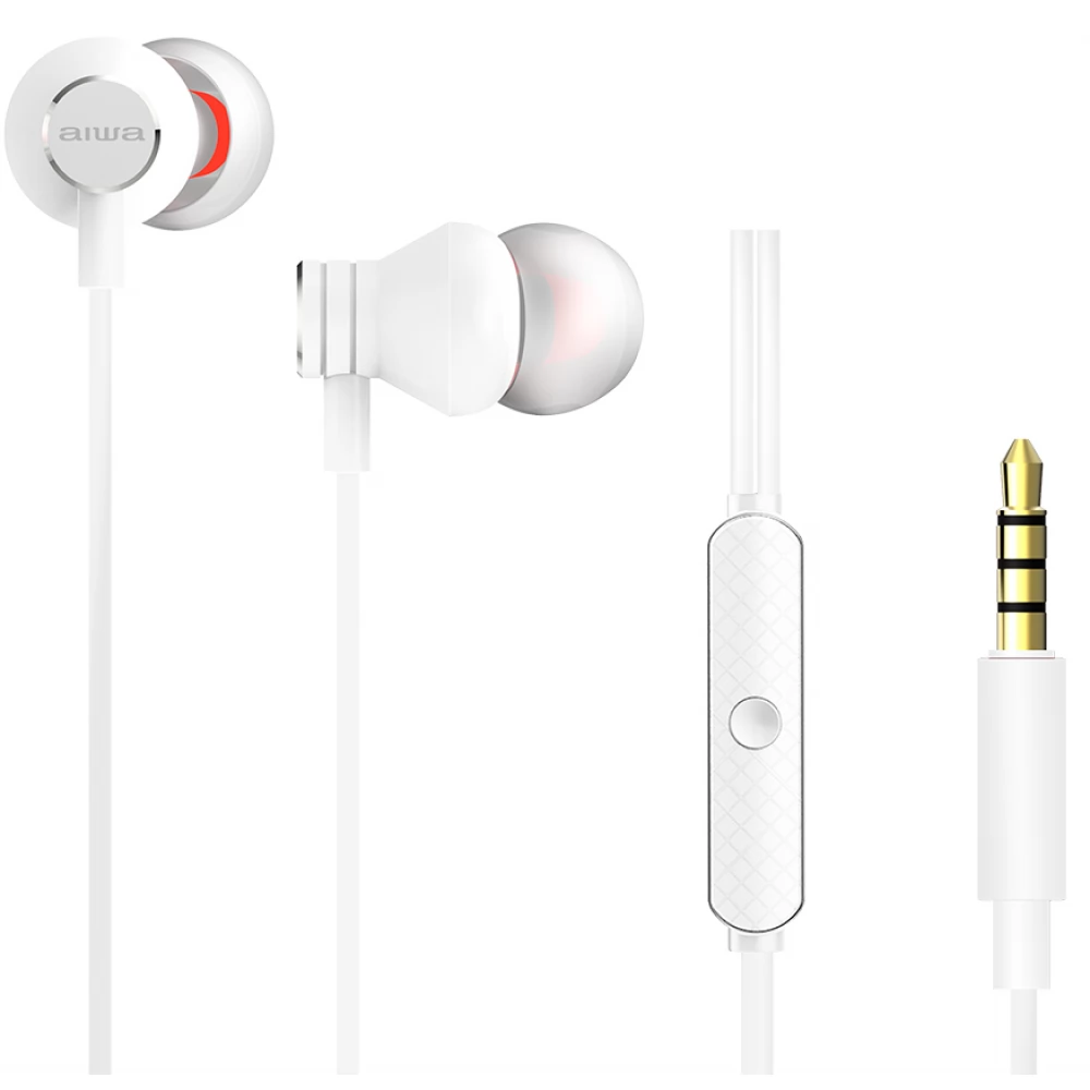 Wenn Sie auf Reisen Ihre Lieblingsmusik hören möchten, können die ESTM-50-Ohrhörer von AIWA die ideale Wahl sein. Mit einem Gewicht von nur 13 g gewährleisten die Ohrhörer eine nahezu unmerkliche Nutzung für jedermann. Die im 30-Grad-Winkel gestalteten Ohrhörer sorgen auch bei ganztägigem Gebrauch für einen sicheren und bequemen Sitz. Das Gehäuse der Ohrhörer besteht aus Metall und sorgt so für einen klaren und kräftigen Klang bei jedem Musikerlebnis. Selbstverständlich ist das Kabel so konstruiert, dass es sich während des Gebrauchs nicht verheddert. Dank seines Mikrofons müssen wir auch auf Telefonanrufe nicht verzichten und können diese mit Hilfe des Druckknopfes am Kabel einfach entgegennehmen. Im Lieferumfang der Ohrhörer sind 3 Paar Silikon-Ohrstöpsel unterschiedlicher Größe enthalten, sodass jeder die richtige Größe finden kann, um bequem und sicher in seine Ohren zu passen. Mit den AIWA ESTM-50 Ohrhörern wird das Musikhören den ganzen Tag über zum Erlebnis.
