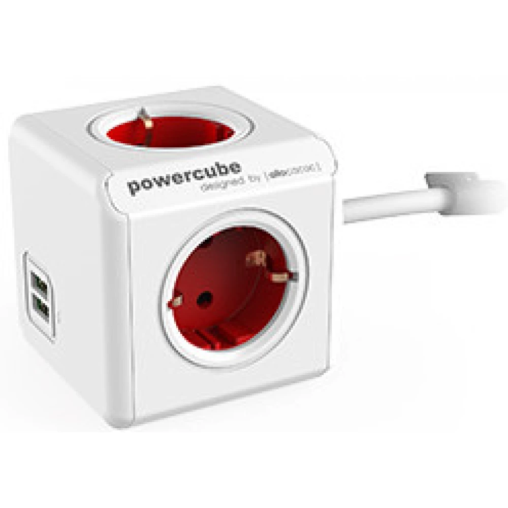 ALLOCACOC PowerCube 4 Steckdose Verteiler 2xUSB 1.5m weiß Rot