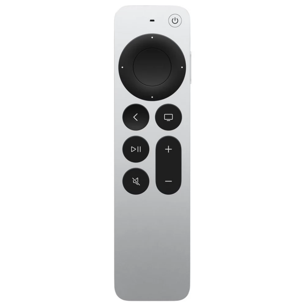 Berührungsempfindliche Klickoberfläche. Sie können mit einer kreisenden Bewegung, die für Ihre Hand leicht zu berühren ist, zwischen Serienteilen, Szenen oder Einzelbildern scrollen. Mit der Fernbedienung können Sie den Fernseher ein- und ausschalten, das Eingangssignal auf Apple TV 4K umstellen und die Lautstärke einstellen.