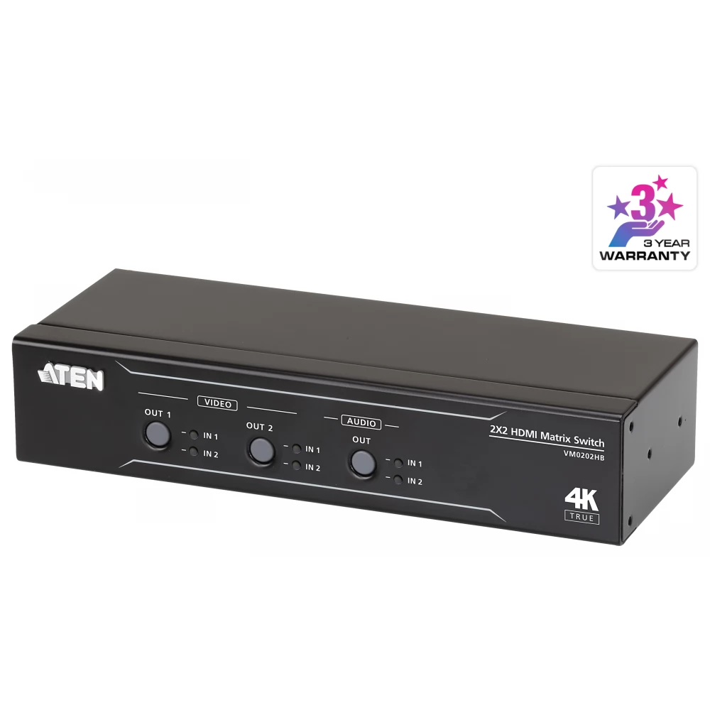 ATEN 2 x 2 True 4K HDMI Matrix Switch with Audio De-Embedder VM0202HB