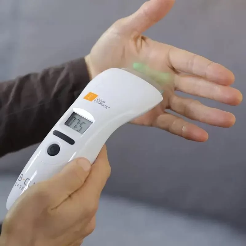 - Wie bei allen B-Cure-Geräten wird auch ein Laserstrahl von 808 m² ausgestrahlt. Damit ist der Laserstrahl für die Behandlung von Geweben von bis zu 3-5 cm von der Körperoberfläche geeignet.