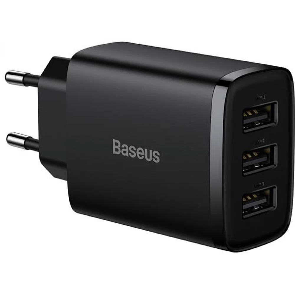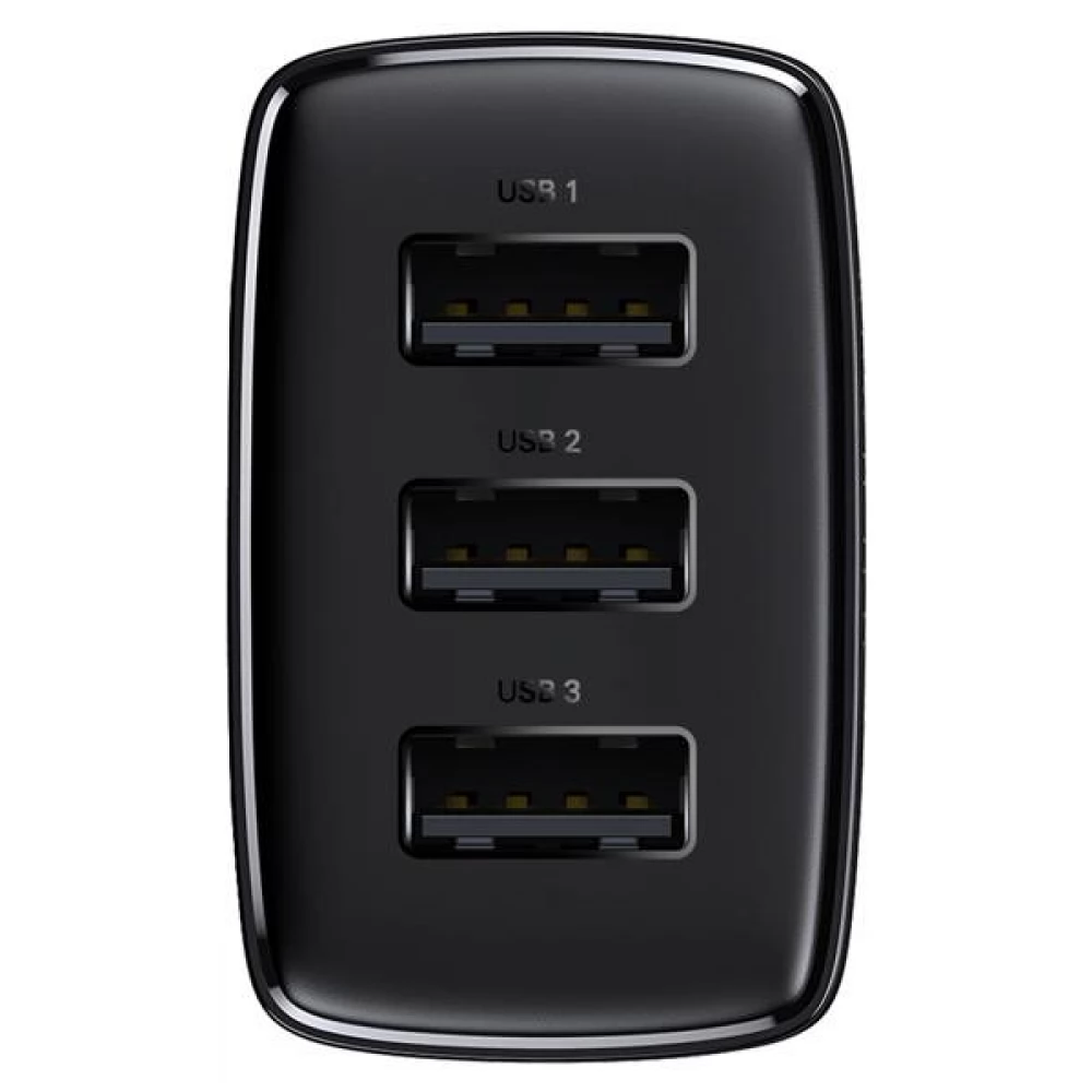 BASEUS Kompakt Schnellladegerät 3x USB 17W schwarz