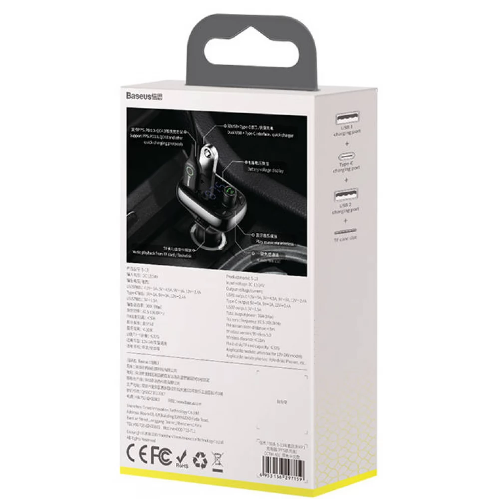 Der BASEUS T-förmige S-13 FM-Transmitter ist ein vielseitiges Autozubehör mit vielen Funktionen. Der führende Sender des Geräts überträgt FM-Signale, spielt MP3-Dateien ab und kann gleichzeitig als Ladegerät mit allen Vorteilen des neuesten Quick Charge 4.0-Standards verwendet werden. Elegant, praktisch und einfach zu bedienen. Mit seinem flachen, ergonomischen Design passt es in alle Fahrzeugeinstellungen.