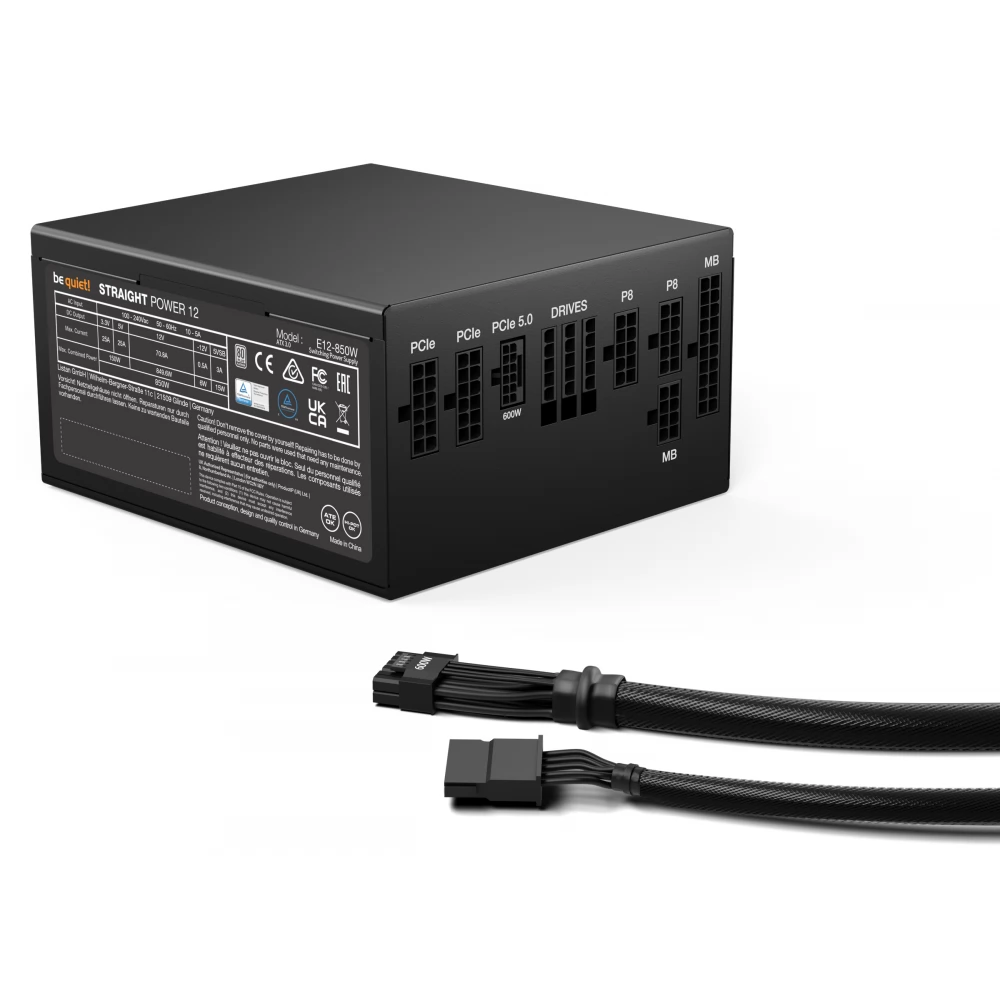 Das Straight Power 12 850 W ist ein ATX 3.1-Netzteil, das sowohl über einen 12VHPWR-Anschluss für PCIe 5.1-Grafikkarten der neuen Generation als auch über vier 6+2-Pin-Anschlüsse für ältere GPUs verfügt.