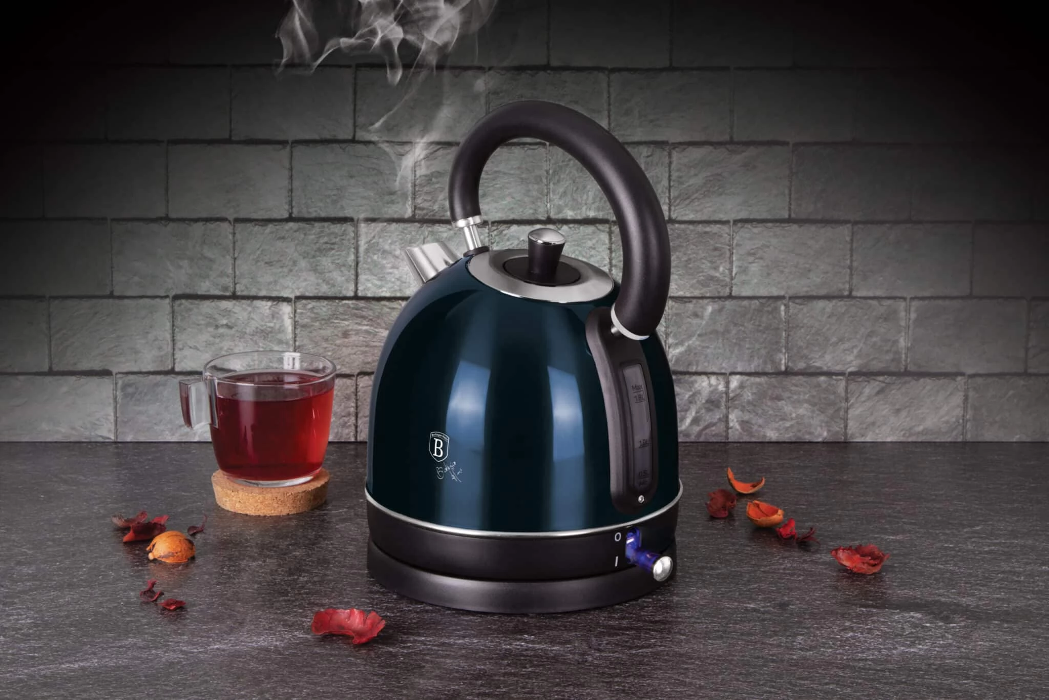 Ein Mitglied der Produktfamilie Metallic Line Aquamarine Edition ist der Wasserkocher (2200 W), der nicht nur eine stilvolle, sondern auch äußerst praktische Wahl für moderne Küchen darstellt. Dank der Leistung von 2200 W kocht er Wasser schnell und effizient und spart so Zeit und Energie.