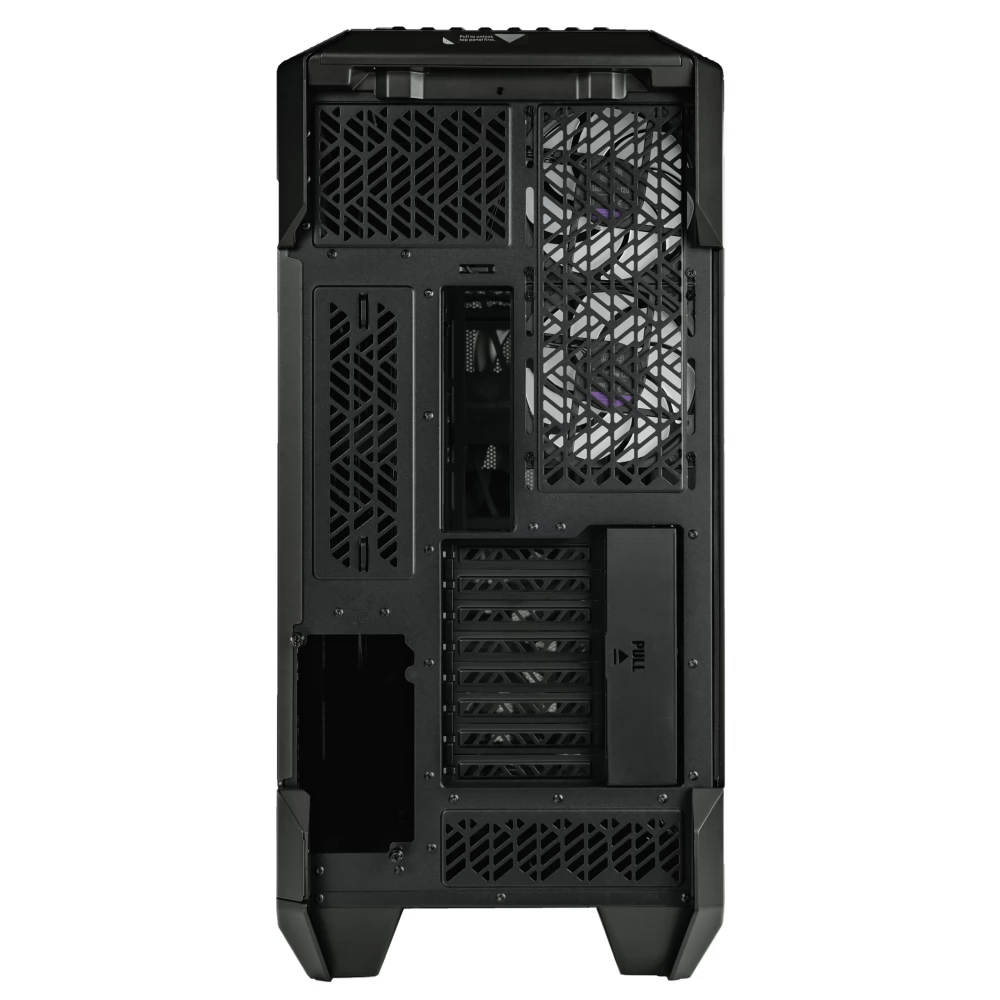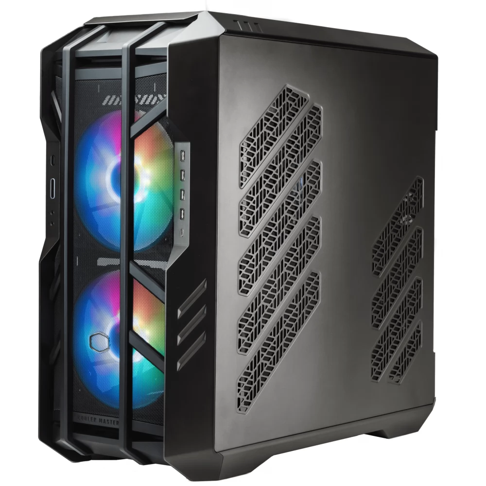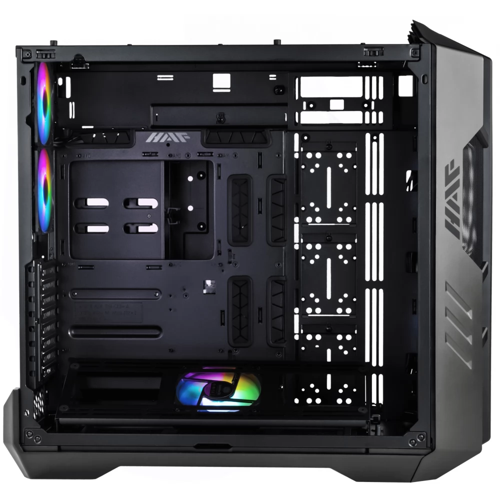 Der HAF 700 verfügt über eine vollmaschige Frontplatte, die speziell für maximalen Lufteinlass entwickelt wurde. Die Frontplatte ist strukturell verstärkt, um Resonanzen durch Lüftervibrationen zu verhindern und einen reibungslosen Betrieb der Systeme mit minimaler Geräuschentwicklung zu ermöglichen. Das einzigartige Design der abnehmbaren oberen Platte ermöglicht eine einfache Installation, Zugang und Wartung von Kühlkomponenten wie Lüftern und Kühlern, selbst bei komplexen Designs mit kundenspezifischen Kühlsystemen. Der HAF 700 ist mit zwei exklusiven 200-mm-Sickleflow-ARGB-PWM-Lüftern der „Performance Edition“ ausgestattet, die darauf ausgelegt sind, Leistungspotenzial und Geräuschpegel in Einklang zu bringen. Der HAF 700 kann sowohl horizontal als auch vertikal sogar SSI-EEB-Motherboards (E-ATX) sowie Grafikkarten jeder Größe aufnehmen.