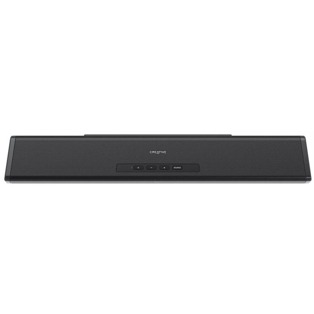 Vervollständigen Sie den gemeinschaftlichen Mittelpunkt Ihres Zuhauses, indem Sie Creative Stage 360 unter Ihrem Fernseher oder bequem auf Ihrem Schreibtisch platzieren, ohne ihn vom Bildschirm wegzunehmen. Diese raffinierte, komplett schwarze Soundbar wurde von unseren Produktdesignern systematisch entwickelt, um eine hochauflösende Audiowiedergabe zu ermöglichen, ohne wertvollen Wohnraum in Anspruch zu nehmen.