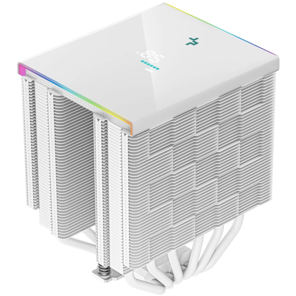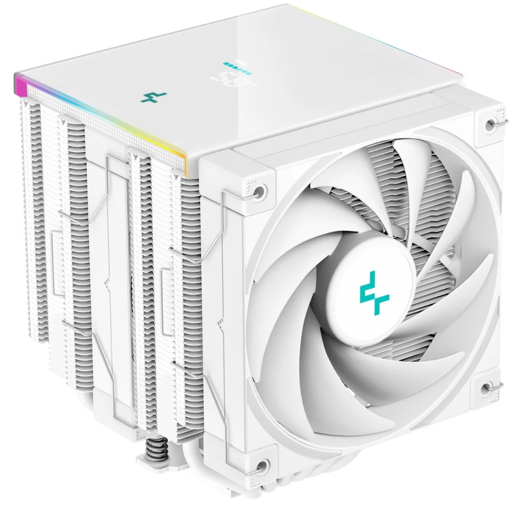 Die komplett weiße Version des dominanten Hochleistungs-CPU-Kühlers AK620. Die gleichen Premium-Materialien mit sechs fortschrittlichen Kupfer-Heatpipes, einem Kühlkörper aus reinem Kupfer, einem dichten Doppelturm-Kühlkörper und zwei leisen FDB-Lüftern bilden eine leistungsstarke, erfolgreiche Formel für Hochleistungskühlung in eisweißem Finish.