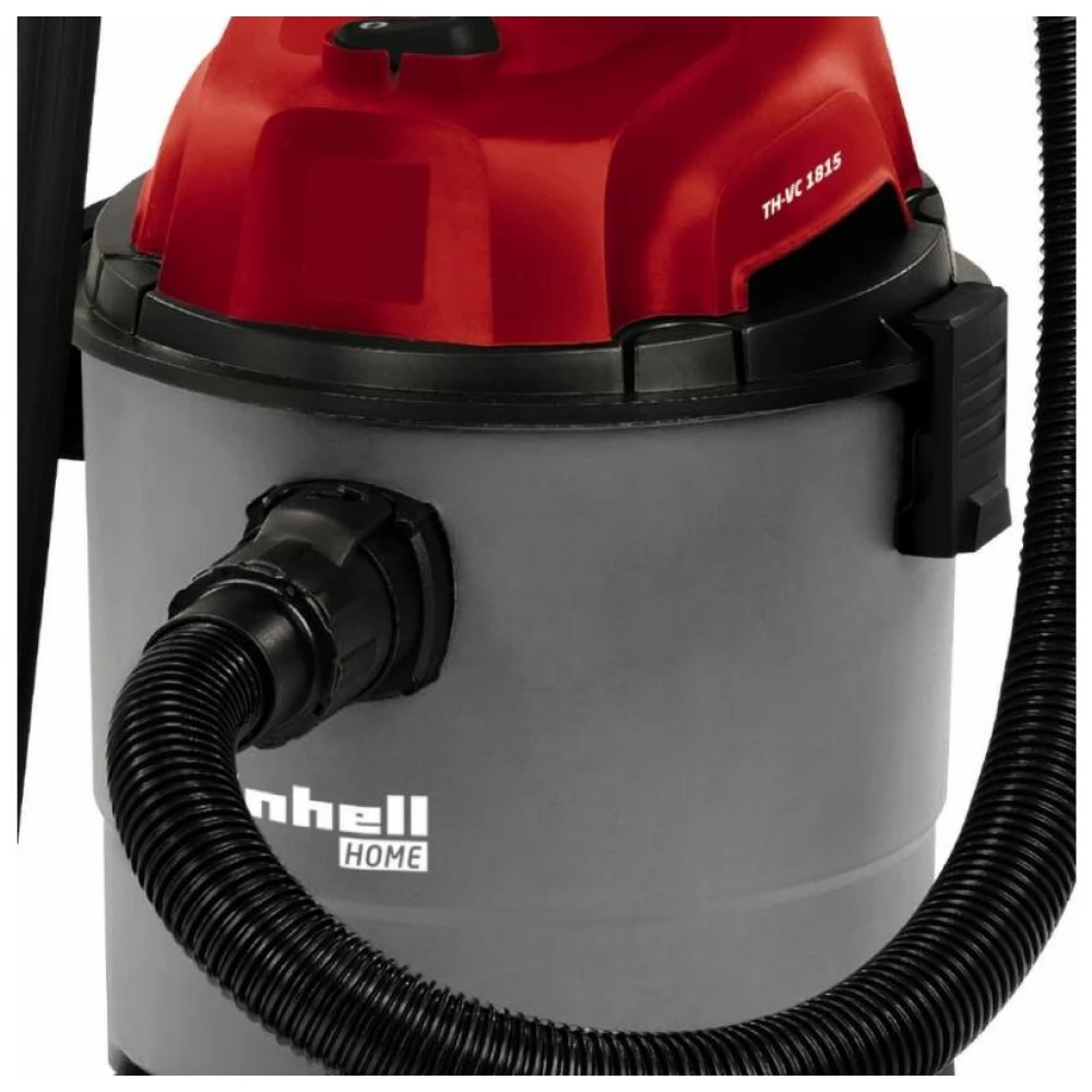 Der Nass-Trockensauger TH-VC 1815 ist ein kompaktes, leistungsstarkes Universalsauggerät für einfache Reinigungsaufgaben im Haushalt. Sein 15-Liter-Kunststoffbehälter sammelt groben, feinen, nassen oder trockenen Schmutz und Flüssigkeit. Sein leistungsstarker 1250-W-Motor sorgt für eine gute Saugleistung, stellt aber gleichzeitig ausreichend Druck zum Anschließen des Gebläses bereit, was ein komfortables Ausblasen schwer zugänglicher Stellen ermöglicht. Der TH-VC 1815 verfügt über einen 36-mm-Saugschlauch mit 3-teiligem Kunststoff-Saugrohr, einen großen Saugkopf, der mit Teppichen und Fliesen kombiniert werden kann, sowie einen Saugkopf, der Spalten reinigen kann. Der Staubfangbeutel macht das Aufsaugen von nassem Staub zu einem sauberen Vorgang. Der Schaumstofffilter schützt den Motor beim Nasssaugen von Schmutz. Zusätzlich sorgt ein Schwimmerschalter für die automatische Unterbrechung der Saugleistung nach Erreichen des maximalen Ladestandes. Mit der Kabelhalterung und der Zubehörhalterung lassen sich sämtliche Zubehörteile schnell und ordentlich am Gerät platzieren. Für eine bequeme Handhabung sorgen der Greifer und das leicht laufende Rollenrad.