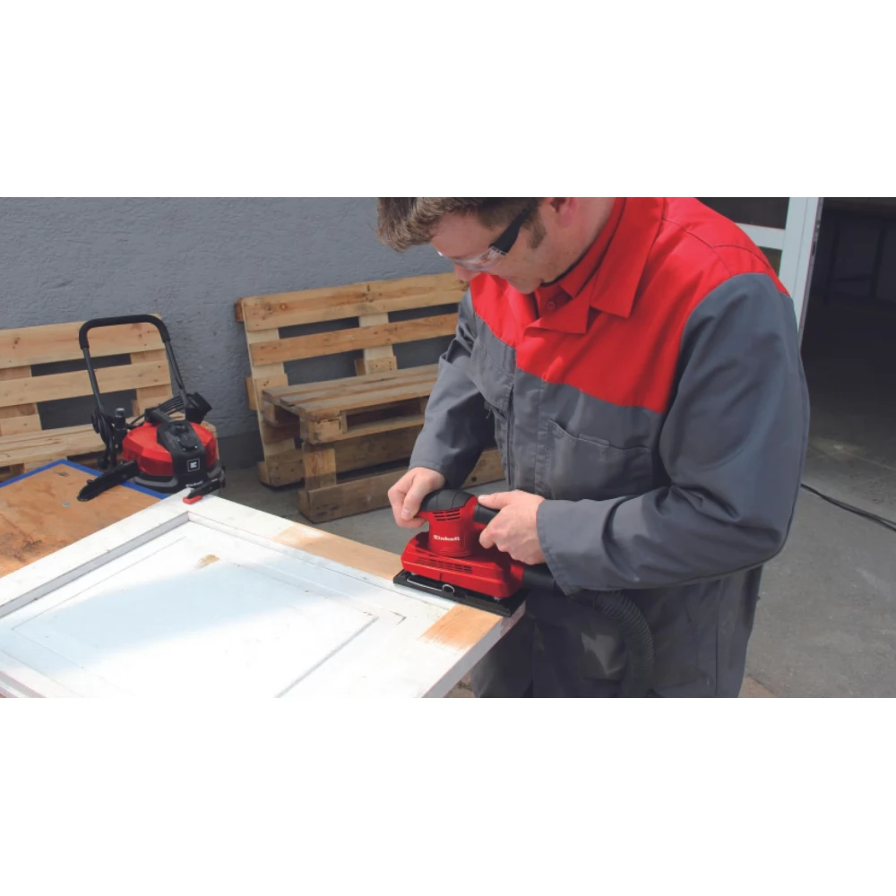 Der Vibrationsschleifer TC-OS 1520 ist ein hochwertiges und einfach zu bedienendes Gerät, das besonders beim Schleifen von ebenen Flächen glänzt. Mit Hilfe der Befestigungsstruktur und dem Klettverschluss können Sie das Schleifmittel in Sekundenschnelle wechseln. Der große, ergonomische Griff des Einhell Vibrationsschleifers TC-OS 1520 sorgt für eine einfache Handhabung, die für ein einwandfreies Schleifergebnis unerlässlich ist. Mit dem praktischen Staubabsaugadapter können Sie ein Absauggerät an das Gerät anschließen und so den Arbeitsbereich sofort von Staub befreien. Im Lieferumfang sind ab Werk drei Stück Schleifpapier enthalten, so dass Sie direkt nach dem Auspacken mit der Arbeit mit dem Gerät beginnen können.