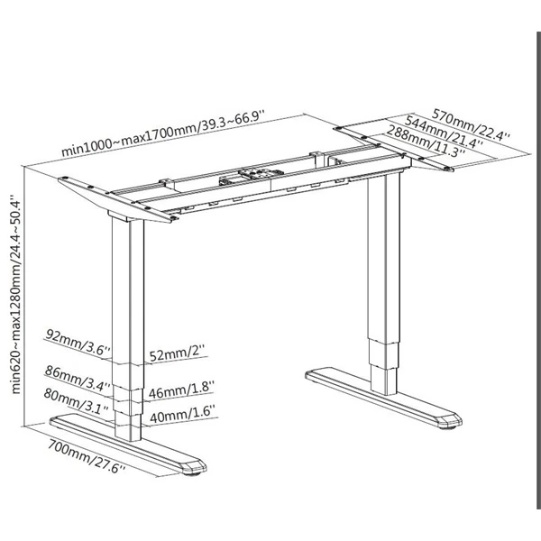 -Suggierte Größe des Desktops: Länge x Breite (1100-2200) x (700-1000) mm