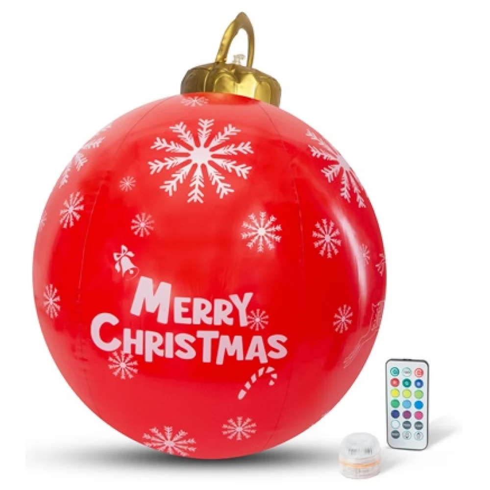 Das neueste, innovative Dekorationstool für die Weihnachtszeit ist der aufblasbare, beleuchtete Dekoball. Dank seiner Größe lässt er sich auch in größeren Gärten platzieren, an einen Baum hängen oder macht auch auf der Wasseroberfläche eines Pools eine gute Figur. Die im Boden der Dekokugel platzierbare LED-Einheit erhellt das Innere der Kugel mit einem wunderbaren Licht. Die LEDs werden mit 2 x CR2450-Batterien betrieben. Mit der mitgelieferten Fernbedienung können Sie den gewünschten Beleuchtungsmodus einstellen.