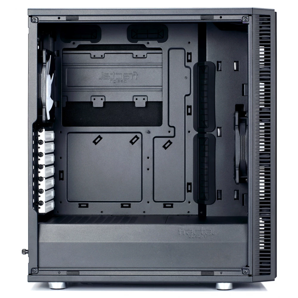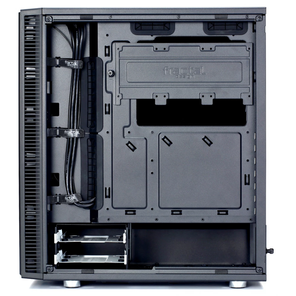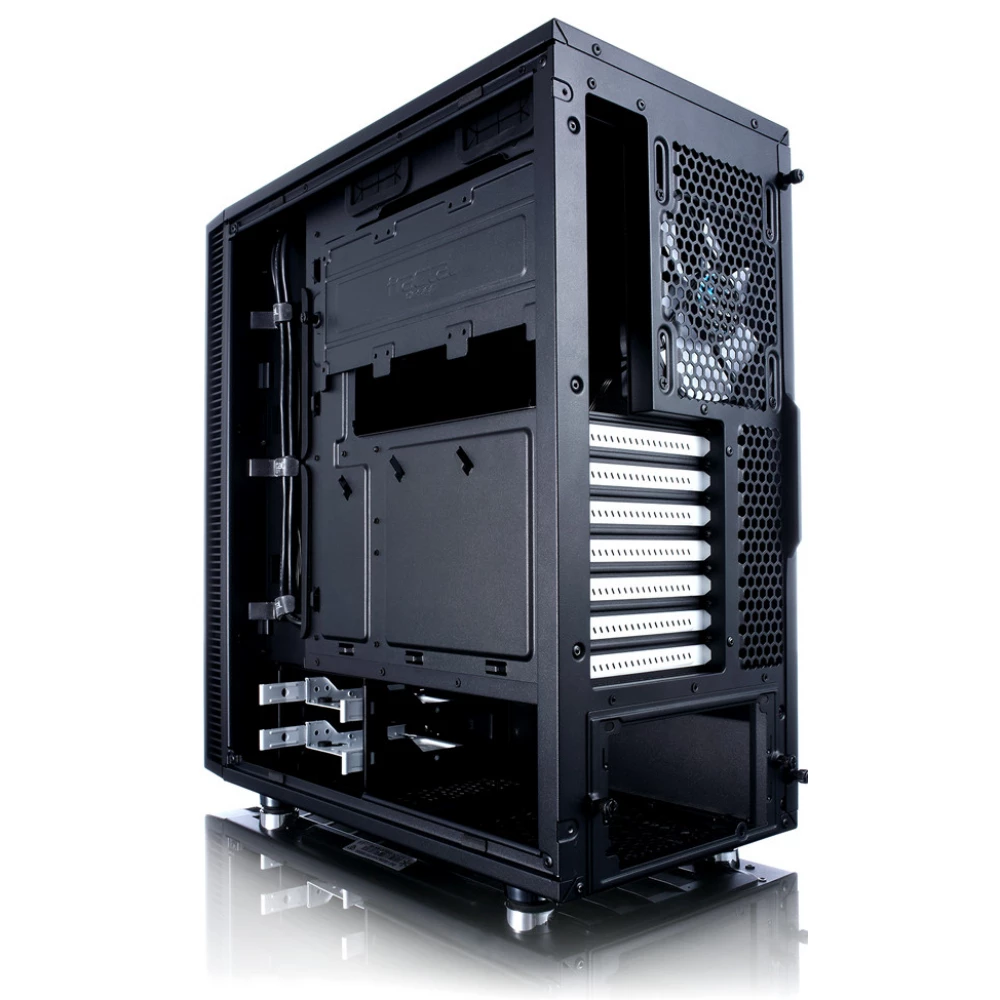 Define C verfügt über optimierte Innenteile, wodurch es kleiner als ein Standard-ATX-Gehäuse ist. Es enthält keine unnötigen Leerräume und nie benutzten Halter.