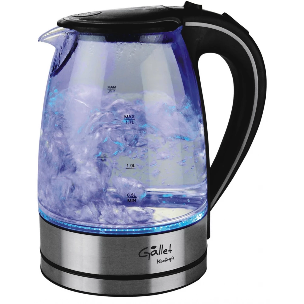 Die Optik des Gallet BOU Wasserkochers ist beeindruckend, er leuchtet im Betrieb blau. Dank des Glases können Sie deutlich sehen, wie viel Wasser in den Wasserkocher gegossen wird, sodass Sie unnötiges Kochen vermeiden können. Die Öffnung der Dose ist mit einem Filter ausgestattet, der verhindert, dass möglicher Kalk in unseren Behälter gelangt. Die Wartung ist äußerst einfach und sicher, der Wasserfilter ist waschbar und schaltet sich automatisch ab. Der Deckel lässt sich per Knopfdruck öffnen.