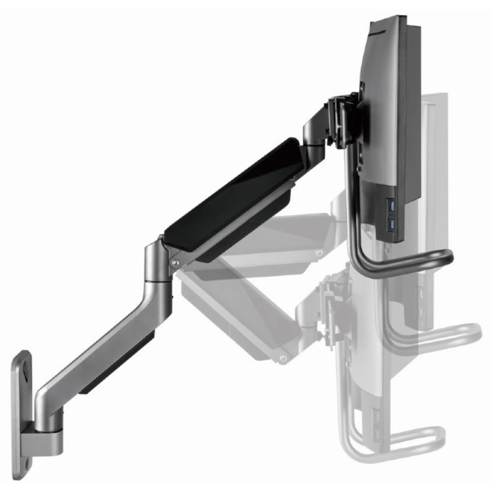 - Die Arme können gedreht, aus- und eingefahren sowie geneigt werden, um den Lesewinkel zu ändern, und ermöglichen die Drehung der Displays vom Quer- ins Hochformat usw.