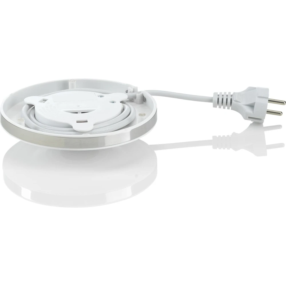 Im Hinblick auf eine herausragende Lebensqualität ist das Design des Wasserkochers durchdacht und freundlich. Die Lichter beleuchten das Glas sanft von innen, während die Edelstahldekoration an der Unterseite des Sockels und des Auslaufs ihm ein erstklassiges Gefühl verleiht. Der Griff liegt perfekt in der Hand. Ergonomisch, immer cool und sieht in der Küche stilvoll aus.