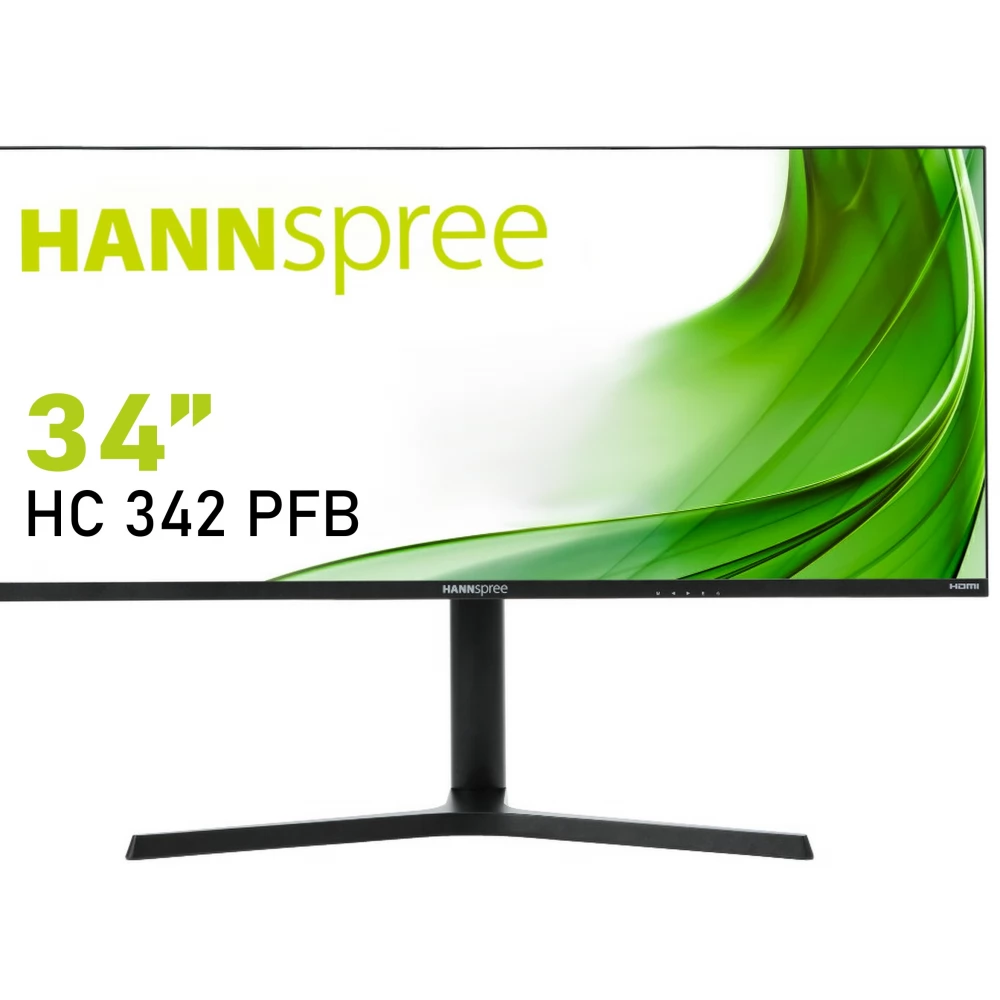 HANNSPREE HC342PFB Typ 34" IPS Panel Schwarzer Monitor mit 3440 x 1440 (UW-QHD) Auflösung.