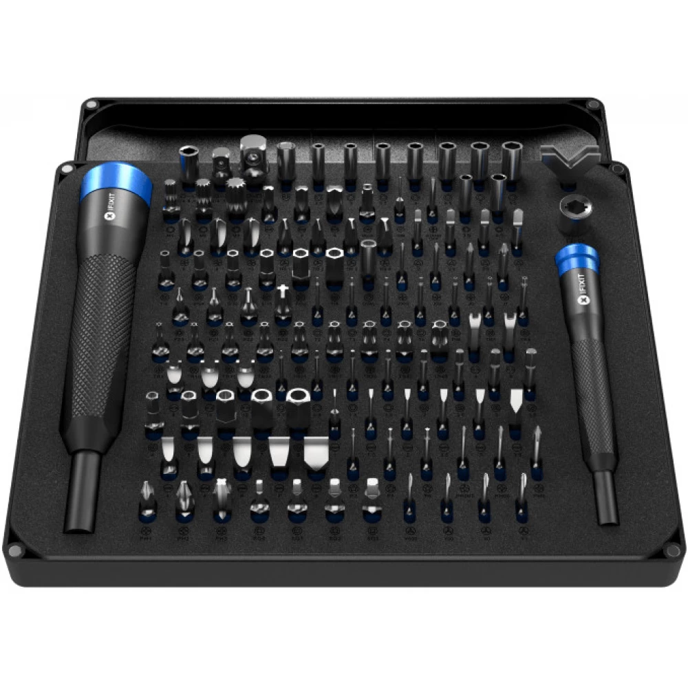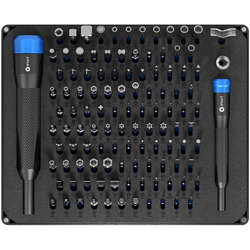 Das Manta Driver Kit enthält den iFixit 1/4"- und 4-mm-Aluminium-Bithalter mit magnetischem Bithalter, gerändeltem Griff und Aufrollkappe sowie 112 Präzisionsbits. Unsere größte Auswahl an Bits umfasst alle Bits, die Sie für die Reparatur benötigen: Kreuzschlitz- und gerade Klingenbits in verschiedenen Größen, um jede Aufgabe zu bewältigen, von Elektronikreparaturen über Heimwerkerprojekte bis hin zu DIY-Projekten. Es wäre kein iFixit-Bitkit, wenn es nicht das Exotische enthalten würde Bits für Apple iPhone- und MacBook-Reparaturen sind auf maximale Benutzerfreundlichkeit ausgelegt: Der Deckel des Bit-Kits ist mit Magneten ausgestattet, um beim Arbeiten Platz zu sparen, oder verwenden Sie den integrierten Organizer zum Aufbewahren von Schrauben und Teilen. Die extra langen 4-mm-Bits sorgen für eine längere und präzisere Reichweite.