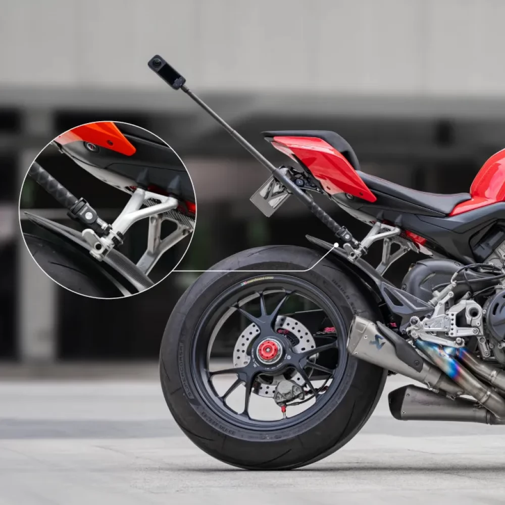 Machen Sie bei Ihren Motorradtouren atemberaubende Aufnahmen. Mit Hilfe der U-Bolt-Halterung können Sie Ihre Insta360-Kamera sicher an Ihrem Fahrzeug befestigen. Befestigen Sie es einfach am Invisible Selfie Stick. Auf diese Weise können Sie ganz einfach fantastische Videoinhalte erstellen, die Ihre Follower in Erstaunen versetzen werden!