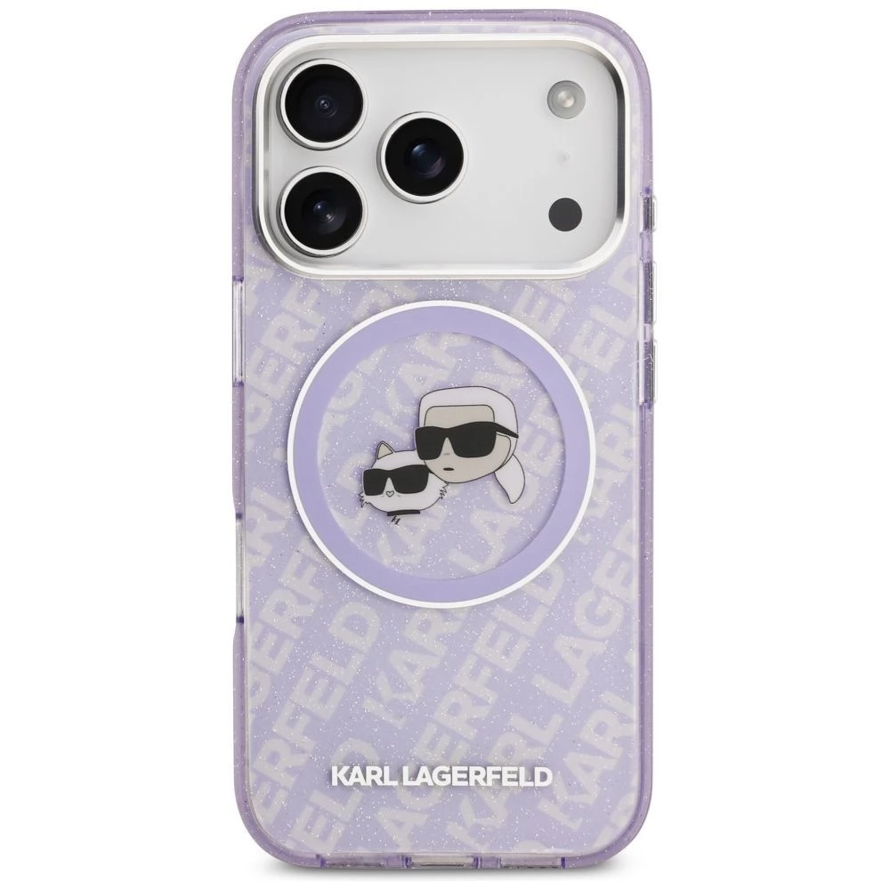 KARL LAGERFELD IML Glitter Karl and Choupette MagSafe Hülle iPhone 17 Pro Max lila
