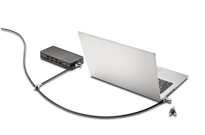 Jetzt können Sie zwei Geräte mit einer einzigen Lösung sperren. Universelles 3-in-1-Kabelschloss mit Schlüssel – Doppelschlossköpfe passen auf Standard-, Nano- und keilförmige Sicherheitssteckplätze und gewährleisten eine universelle Passform, unabhängig von der Hardwaremarke oder -generation. Es eignet sich perfekt zum Sichern mehrerer Geräte wie Laptops, Monitore oder Docks. Es vereinfacht die Kabel- und Schlüsselverwaltung, reduziert Kabelsalat und trägt dazu bei, Ihre Schließlösung „zukunftssicher“ zu machen. Die Verschlussspitzen sind leicht austauschbar; Durch den Riemen bleiben ungenutzte Verschlussspitzen immer griffbereit. Das gängige 5-mm-Schlüsselsystem, die patentierte Hidden Pin™-Technologie und das Karbonstahlkabel bieten starken Schutz vor Diebstählen und Diebstahlversuchen. Der dreh- und drehbare Schlosskopf ermöglicht eine flexible Bewegung und ein einfaches Einstecken des Schlüssels. Zu den weiteren Funktionen gehören Register & Retrieve™ für einen schnellen, sicheren und einfachen Schlüsselaustausch; und eine fünfjährige Garantie von Kensington, dem Erfinder und Weltmarktführer für Laptop-Sicherheitsschlösser. Alle Kensington-Schlösser wurden auf Festigkeit, körperliche Belastbarkeit und mechanische Flexibilität geprüft und getestet.