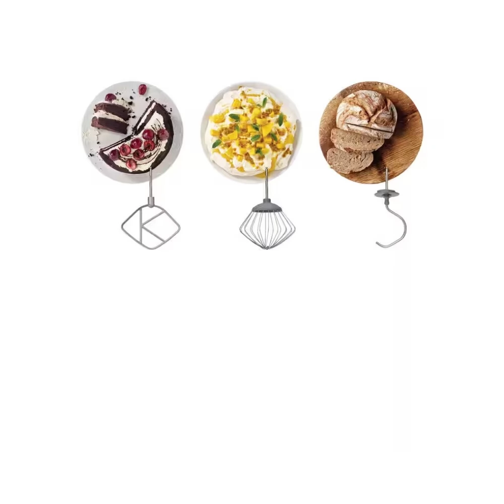Unterschiedliche Aufgaben erfordern unterschiedliche Werkzeuge. Mit dem Set aus drei langlebigen Werkzeugen können Sie alles, was vorbereitet ist, immer in Angriff nehmen. Zum Zubehör des Prospero+ gehören ein Schneebesen, ein Knethaken und der charakteristische K-Mixer – ein wirklich vielseitiger Begleiter beim Backen.