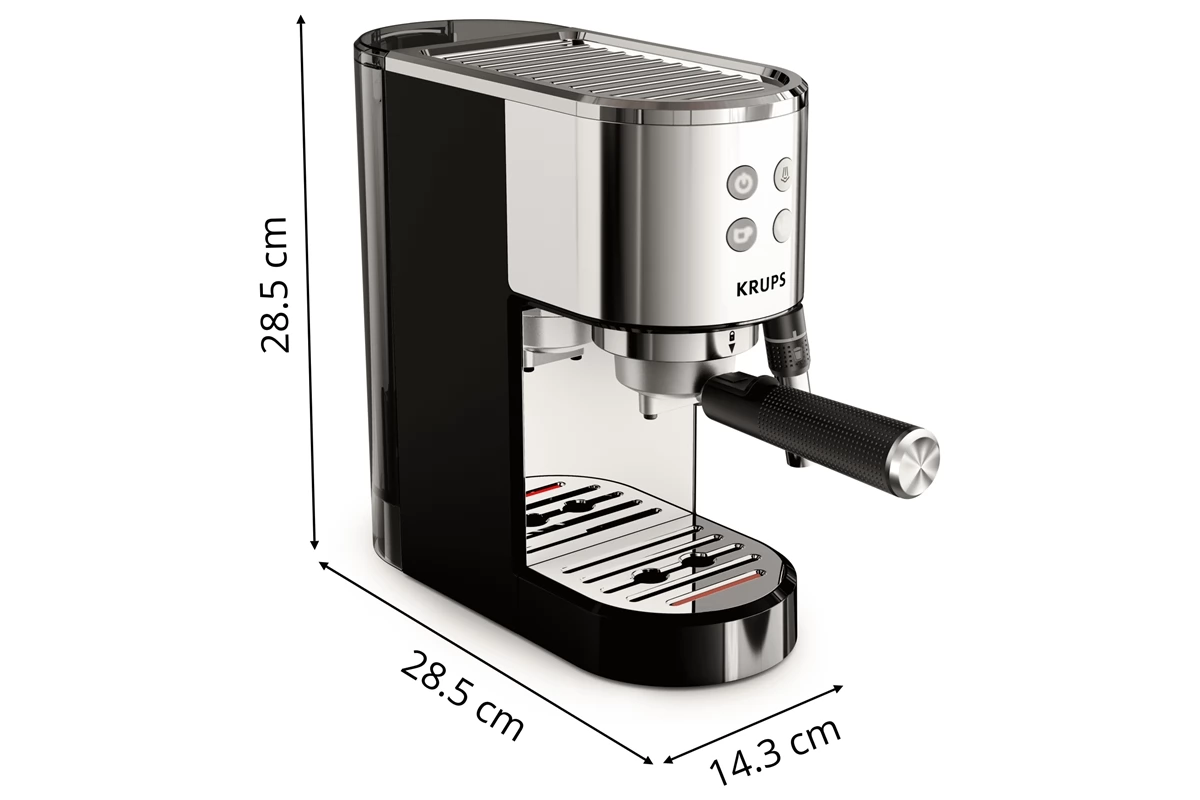 Genießen Sie zu Hause zubereiteten Espresso mit der eleganten und modernen Kaffeemaschine. Das Gerät besteht aus hochwertigem Edelstahl für eine lange Lebensdauer und ist mit einem kompakten Gehäuse für die Alltagstauglichkeit ausgestattet.