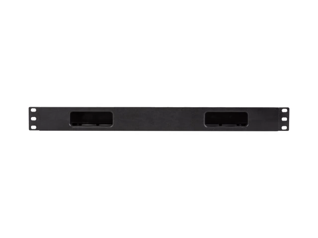 Kabelorganisator 2U Typ Lanberg für 19"-Rackschränke. Der Kabelorganisator ist mit Kabellöchern und Steckern ausgestattet.