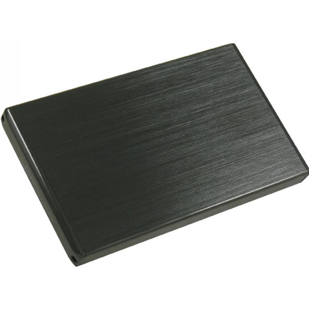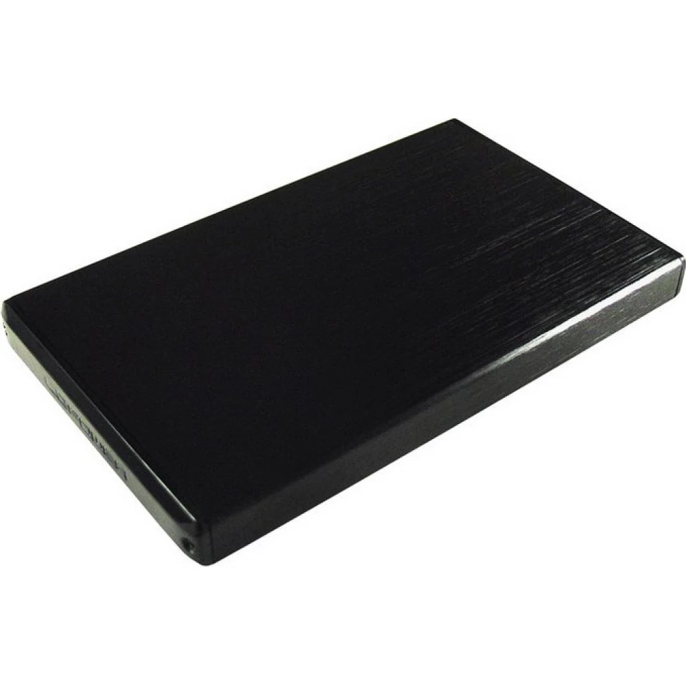 Schwarzes Aluminiumgehäuse für 2,5-Zoll-SATA-Festplatten mit USB 3.0-Anschluss.