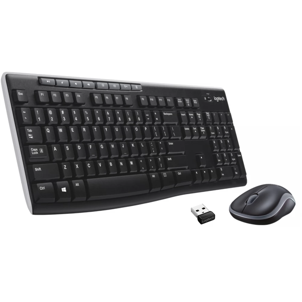 Das kabellose Tastatur- und Mausset LOGITECH MK270 vereint den Komfort einer Tastatur in voller Größe mit einer kompakten Maus. Mediensteuerungstasten, ein Ziffernblock und eine präzise Cursorsteuerung machen Ihre Arbeit viel reibungsloser.