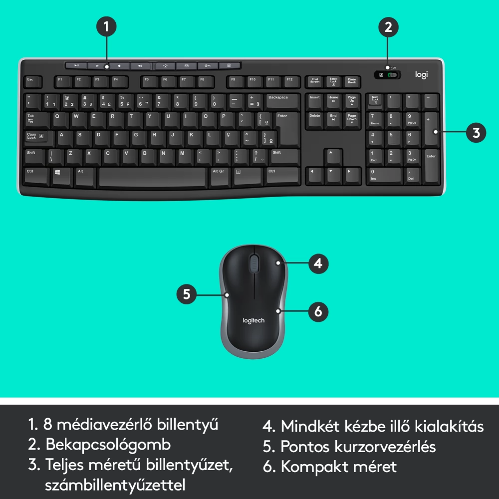 LOGITECH MK270 Draht ohne Tastaturen und Maus einstellen ungarisch - Schwarzgrau