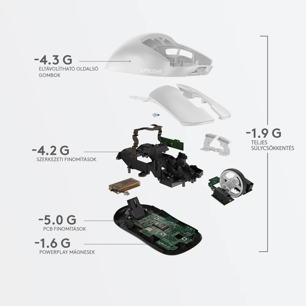 Aufgrund der kontinuierlichen Zusammenarbeit mit professionellen E-Athleten wurde Pro X Superlight für einen einzigen Zweck entwickelt: um die einfachsten pro-drahtlosen Mäuse für ein Spielen zu schaffen und gleichzeitig die Qualität und die strukturelle Einheit von Logitech-G-Produkten beizubehalten.