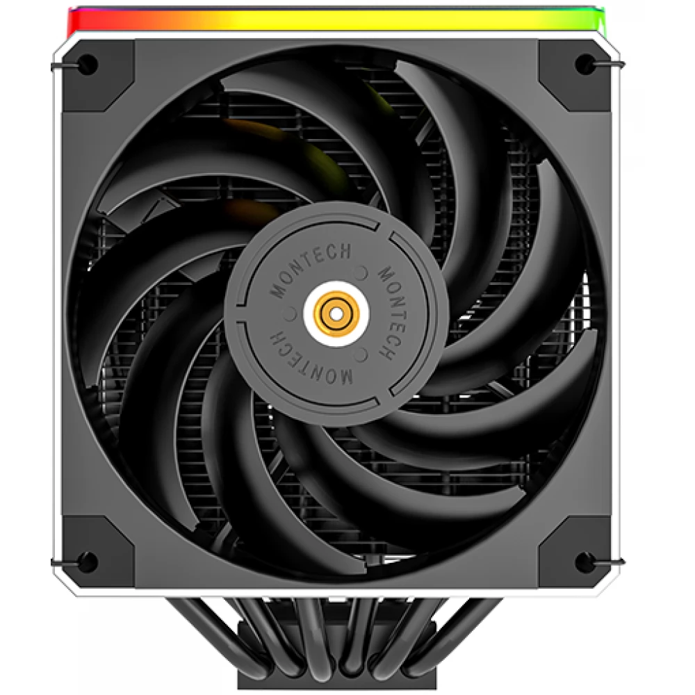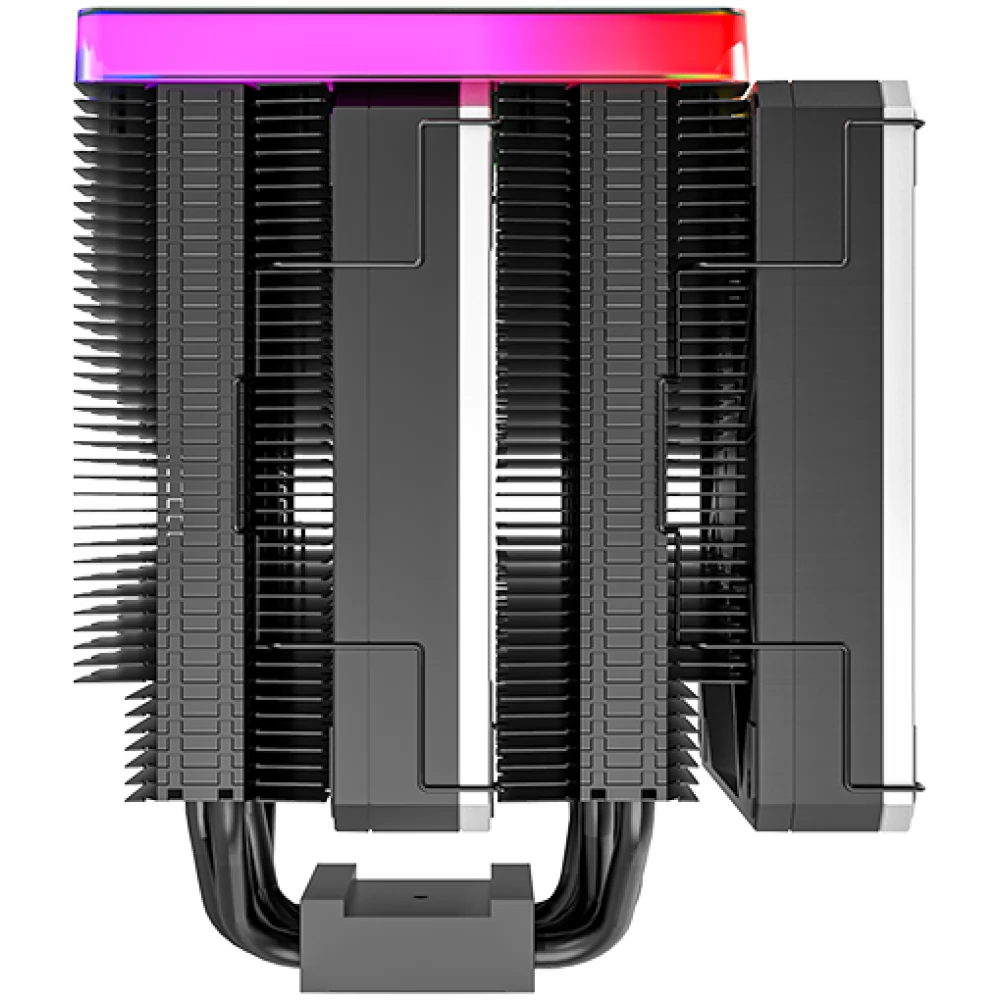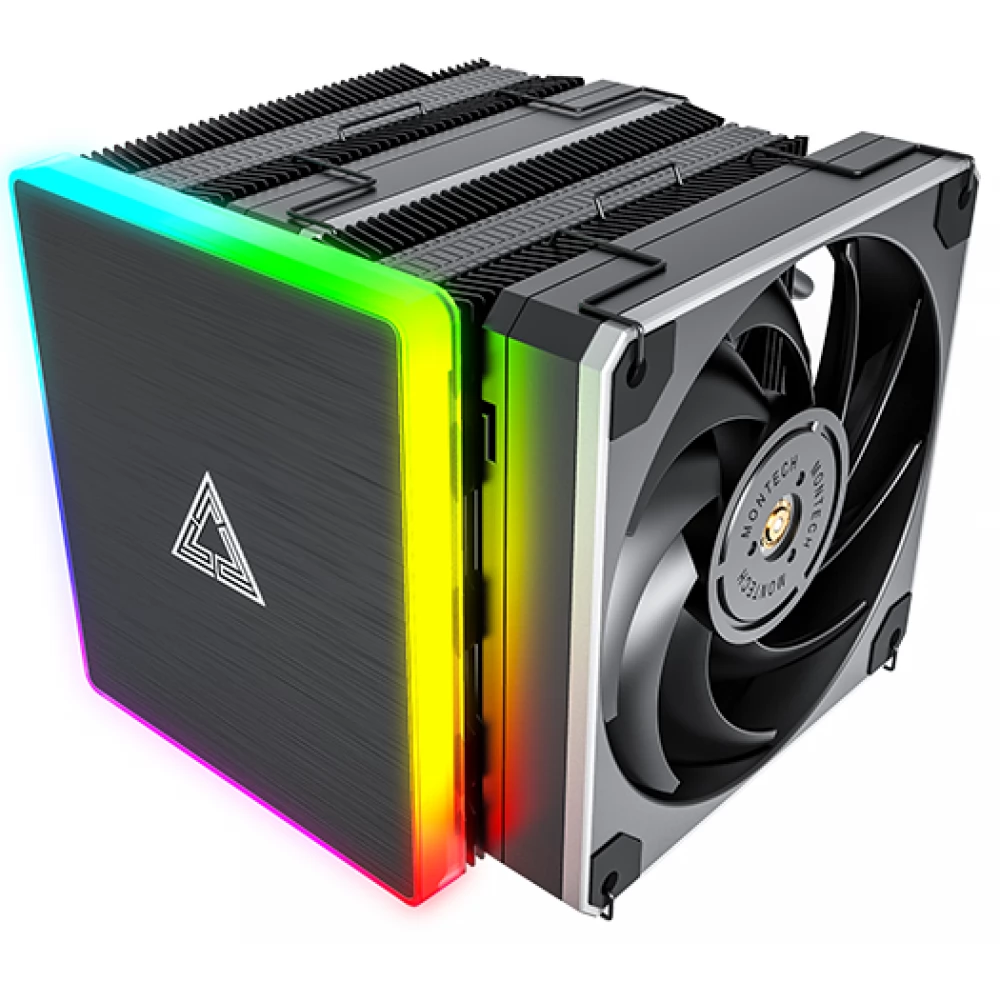 Universeller CPU-Kühler im Doppelturm-Design, wärmeleitendes Rohr, mit 2 120-mm-Lüftern mit PWM-Regelung bis 270 W TDP. Das Besondere am Kühler ist die obere Abdeckung mit ARGB-Beleuchtung.