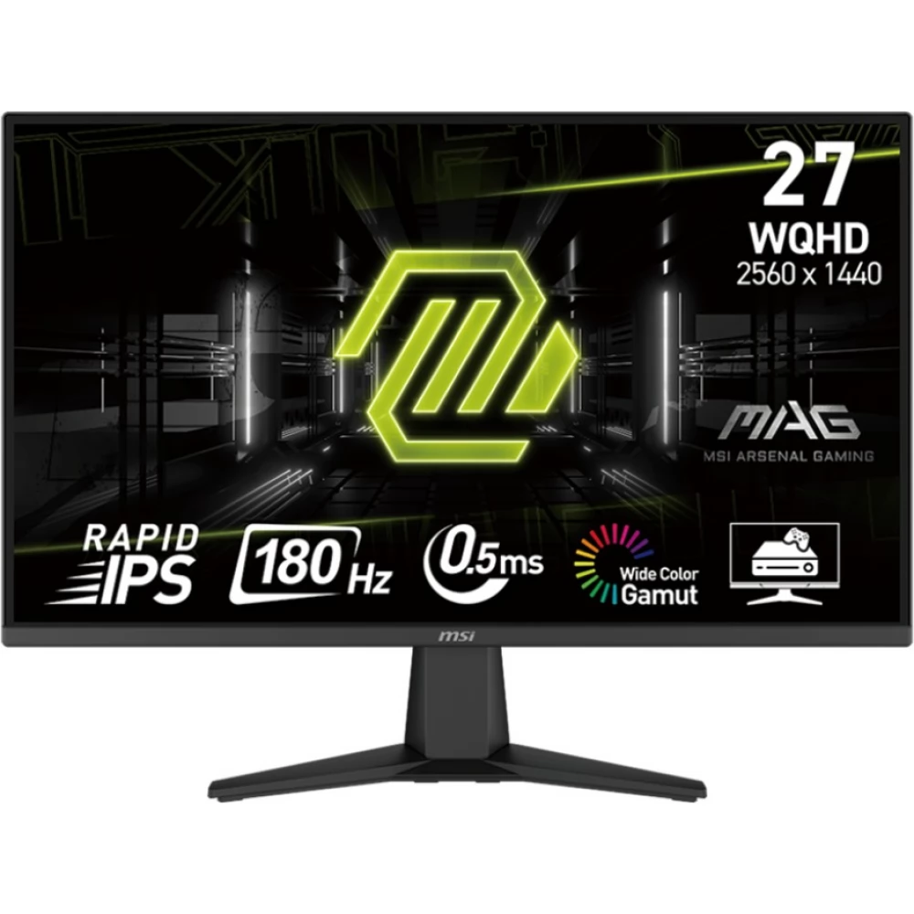 Schwarzer Monitor mit 27-Zoll-IPS-Panel vom Typ MSI MAG 275QF und einer Auflösung von 2560 x 1440 (WQHD).