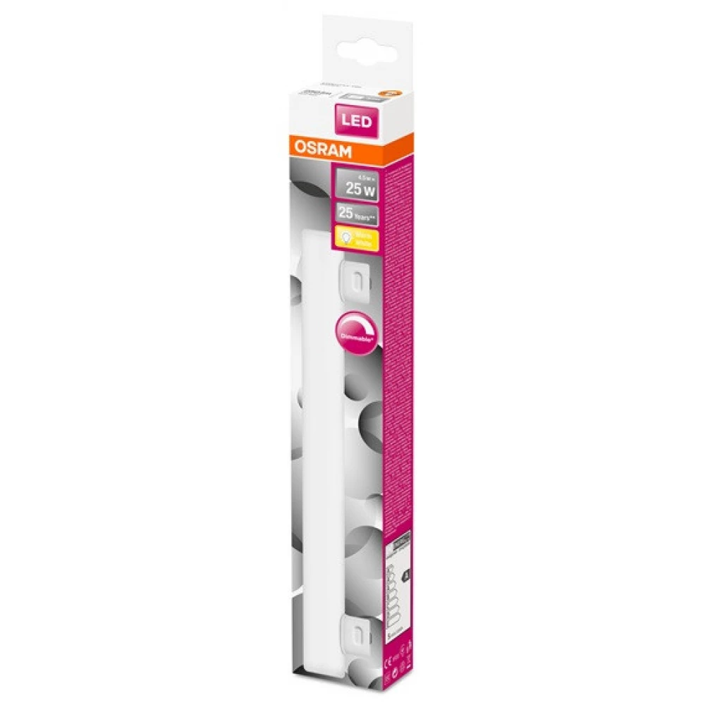 OSRAM LEDinestra dimmbare LED-Röhre, Schirm aus Milchglas, 4,5W 250lm 2700K S14s, mittlere Lebensdauer: 25.000 Stunden, Lichtfarbe: warmweiß, Abstrahlwinkel: 200 Grad, Energieklasse: A, Lichtausbeute: 56 lm/W, Schaltzahl: 100000, ausgelöste herkömmliche Glühbirne: 25 W, Produktlänge: 300 mm, Produktdurchmesser: 29 mm.