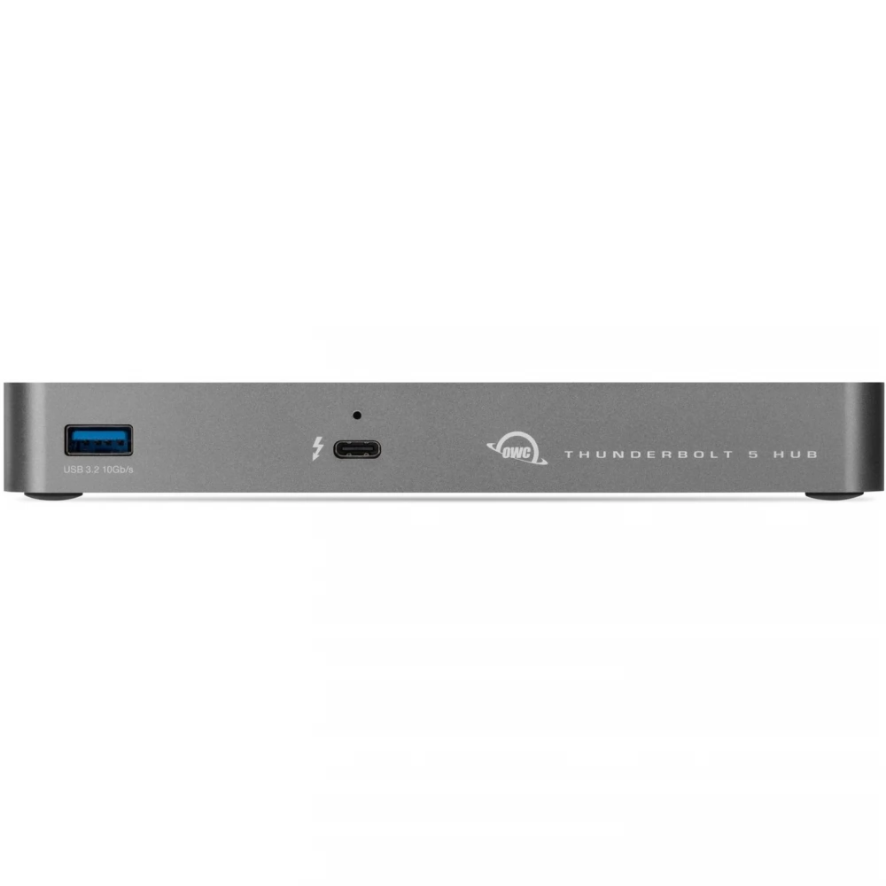 Der OWC Thunderbolt 5 Hub fügt Ihrem Mac, PC oder iPad Pro drei zusätzliche universell kompatible Thunderbolt 5 (USB-C)-Anschlüsse hinzu. Arbeiten und spielen Sie schneller mit bidirektionalen Datenübertragungsgeschwindigkeiten von bis zu 80 Gbit/s (bis zu doppelt so schnell wie Thunderbolt 4/USB4) und bis zu 120 Gbit/s für große Anzeigebandbreitenanforderungen. Der OWC Thunderbolt 5 Hub verbindet Ihr System mit den neuesten und zukünftigen Thunderbolt-, USB-C- und DisplayPort-Displays für unglaubliche 4K-, 5K-, 6K- und bis zu drei 8K-Displays. Der Thunderbolt Hub verfügt außerdem über einen USB-A 3.2 Gen2 (10 Gb/s)-Anschluss zum Anschluss zusätzlicher Peripheriegeräte oder Speichergeräte. Power Delivery (PD) ermöglicht das Laden angeschlossener Geräte mit bis zu 140 Watt, sodass keine zusätzlichen Netzteile erforderlich sind und alle Geräte zur Verfügung stehen. Der Thunderbolt 5 Host-Port versorgt den Host-Computer mit bis zu 140 Watt Leistung.