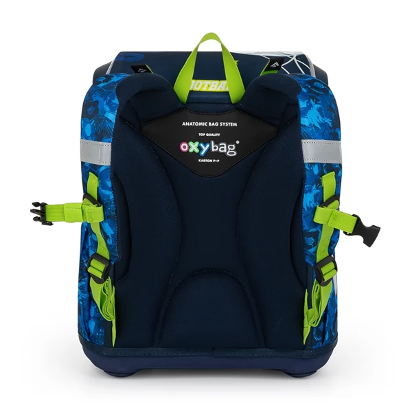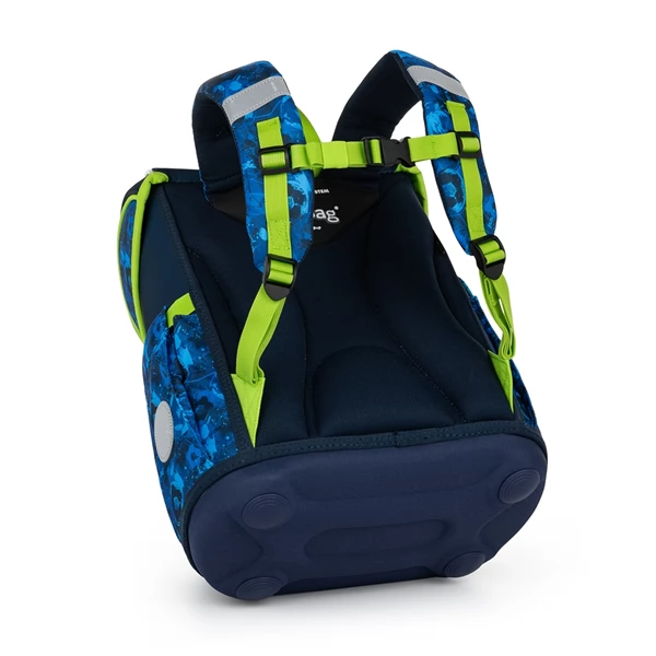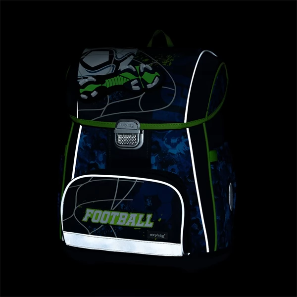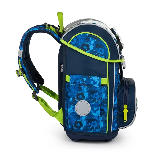 Schulranzen mit Fußballmuster, durch sein spezielles Design wiegt der Rucksack nur 1100 Gramm und belastet somit die Wirbelsäule des Kindes nicht unnötig. Er ist mit einem verstärkten Unterteil ausgestattet, die Kunststoffpolster verhindern äußeren Schmutz und garantieren die Haltbarkeit des Rucksacks. Eine praktische Snacktasche und zwei Seitentaschen erleichtern die Organisation und die Innenaufteilung ist genau auf die Bedürfnisse der ersten und zweiten Klasse abgestimmt. Sein anatomisch geformter und gepolsterter Rücken besteht aus angenehm atmungsaktivem Material, die breiten gepolsterten Träger passen sich perfekt den Kinderschultern an und verteilen die Last gleichmäßig. Es verfügt über mehrere reflektierende Elemente, die die Tasche besser sichtbar machen. Ab 6 Jahren und mindestens 123 cm Körpergröße 1-2. Empfohlen für den Unterricht! Fassungsvermögen: 28 Liter, Tragkraft: 8 kg