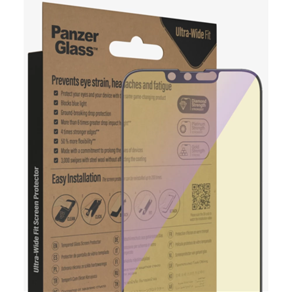 PANZERGLASS Full Glass Anti-Blue Light Bildschirmschoner iPhone 14/13 Pro/13 schwarz-transparent