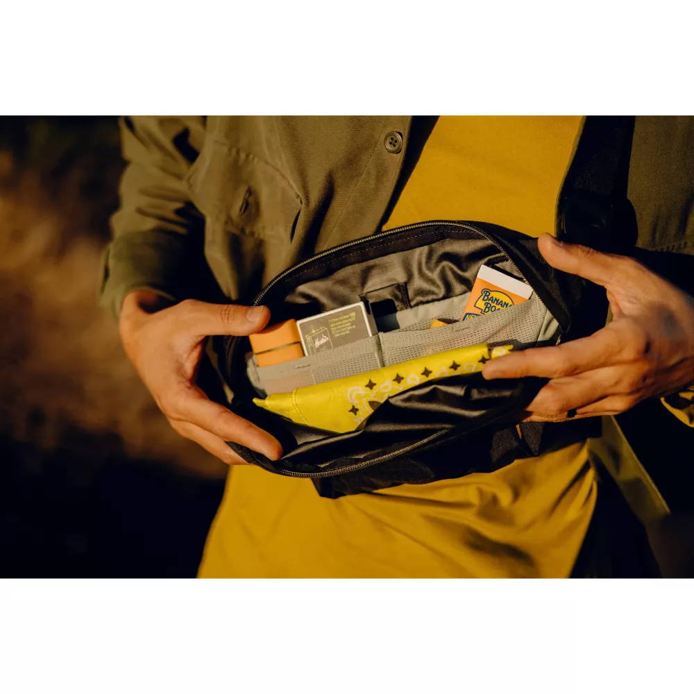 Packen Sie das Nötigste in die 2-Liter-Outdoor-Umhängetasche von Peak Design. Diese Tasche verfügt über mehrere Innentaschen, darunter eine mit Magnetverschluss, ideal für Ihr Telefon. Mit dem integrierten Schlüsselring haben Sie Ihre Schlüssel stets griffbereit. Mit dem beidhändigen Schultergurt können Sie diese Tasche auf der linken oder rechten Schulter tragen. Diese Bluesign-zertifizierte Tasche besteht aus recyceltem Nylon.