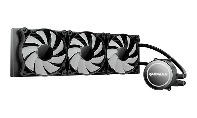 Die wichtigsten Merkmale der Kühlung sind die leise und effiziente Pumpe, die Kupfer-CPU-Kontaktfläche, der 12-Kanal-Aluminium-Radiator und die 400 mm langen, widerstandsfähigen, mit Kabelstrümpfen ummantelten Wasserkühlungsrohre.