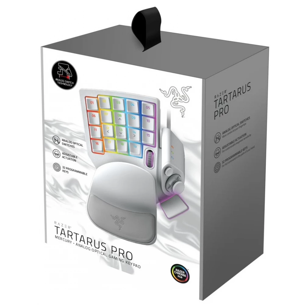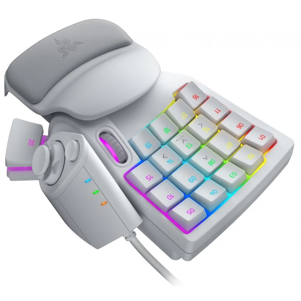 Das Razer Tartarus Pro Chroma RGB ist eine insgesamt verbesserte Version der klassischen Gaming-Steuerung. Als Ergebnis dieser Entwicklungen können Spieler ein Maß an Individualisierung und Komfort genießen, das zuvor undenkbar war. Dieses hochwertige weiße Accessoire würde auf dem Schreibtisch jedes Gamers großartig aussehen, der die Präzision, Geschwindigkeit und den Stil dieses Razer-Produkts zu schätzen weiß.