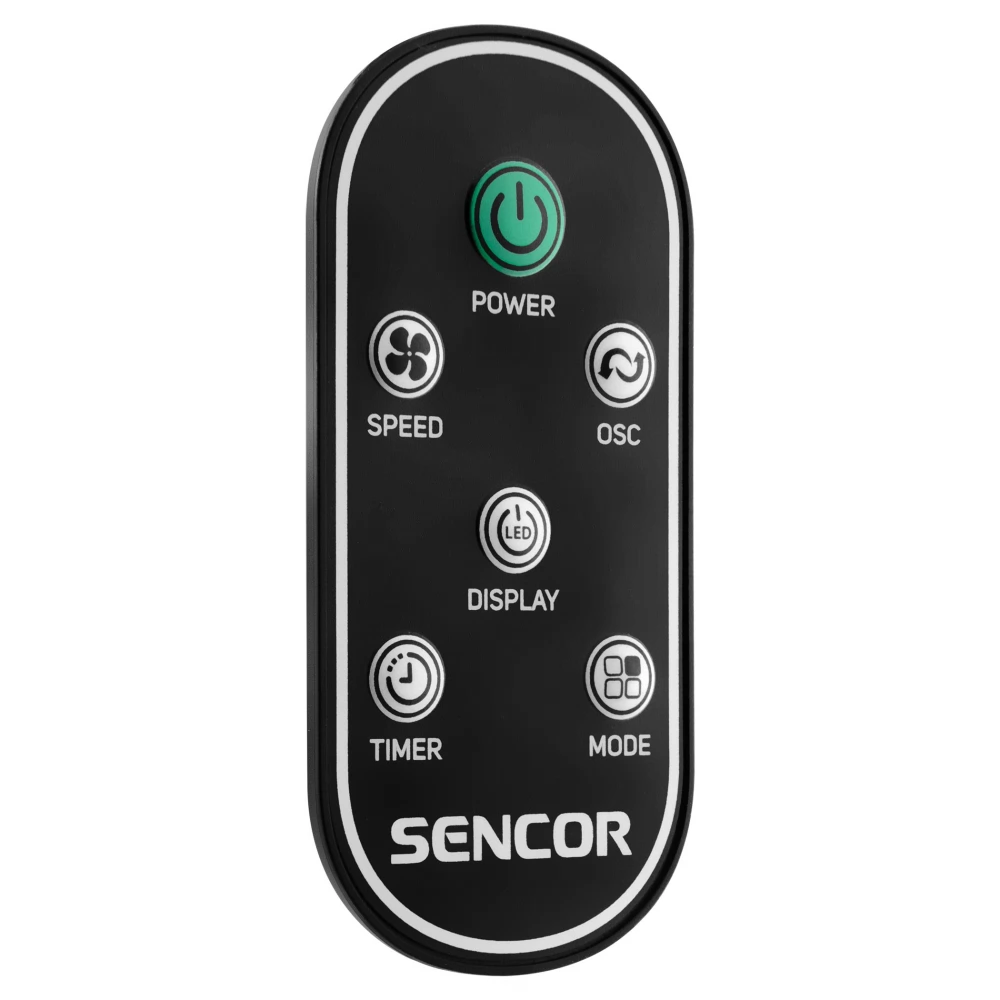 Die Steuerung über das Touchscreen-Bedienfeld am Gerät gewährleistet eine einfache und schnelle Programmauswahl. Es verfügt außerdem über ein transparentes LED-Display mit weißer Hintergrundbeleuchtung, das die aktuelle Lufttemperatur anzeigt. Eine weitere Option ist die Fernbedienung, die über die gleichen Symbole wie der Ventilator verfügt. Zu guter Letzt können Sie die Sencor HOME App über WLAN und Smartphone nutzen.