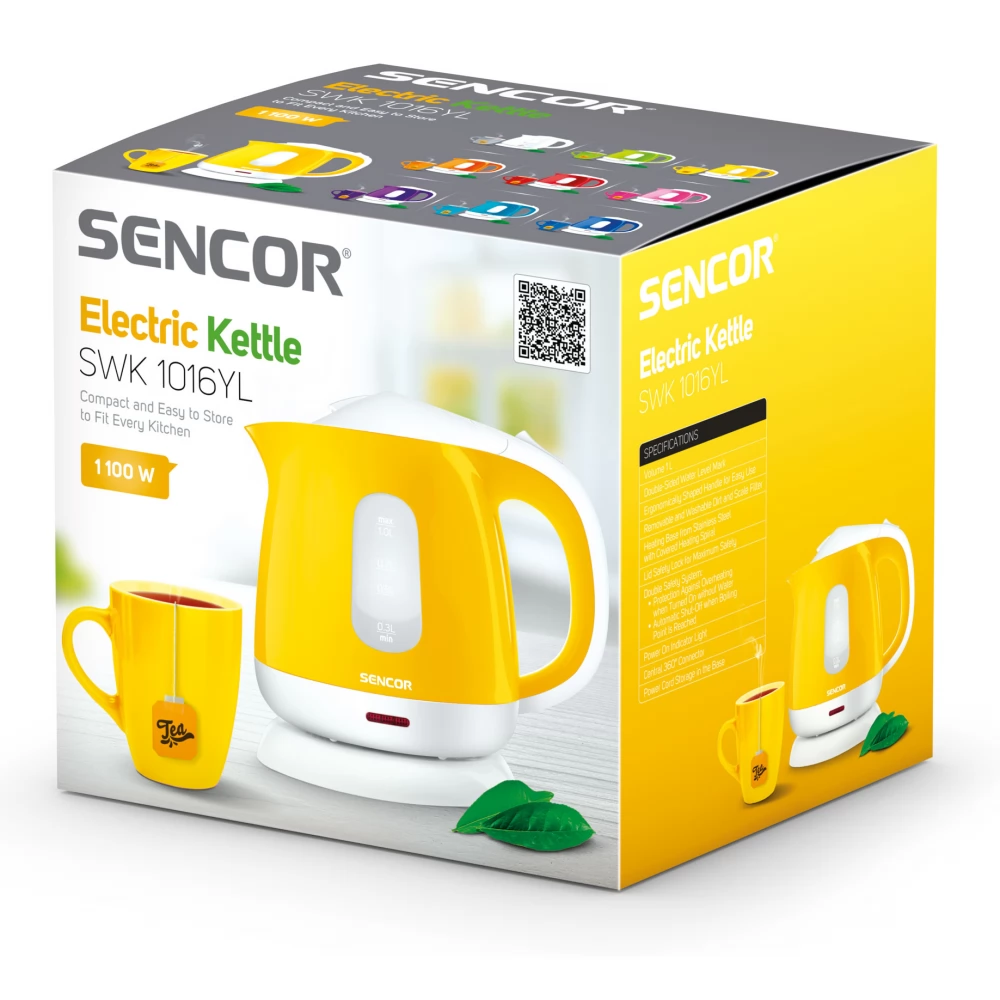Mit dem klassischen Wasserkocher Sencor SWK 1016YL können Sie Zeit und Energie sparen. Dank der Leistung von 1100 W kocht der Wasserkocher das Wasser schnell. Sein Fassungsvermögen von 1 Liter macht ihn zur idealen Wahl für Haushalte mit 1–2 Personen, und der eingebaute Filter lässt sich einfach und unkompliziert herausnehmen und reinigen. Wasserzeichen auf beiden Seiten des Wasserkochers helfen dem Benutzer. Das eingebaute, versteckte Heizelement aus hochwertigem Edelstahl erwärmt nicht wie bei verschiedenen Kochfeldern die Luft um sich herum, sondern nur den Inhalt des Wasserkochers. Viele Sicherheitsfunktionen sind vorhanden, wie zum Beispiel ein Überhitzungsschutz oder die Möglichkeit, ohne Wasser einzuschalten.