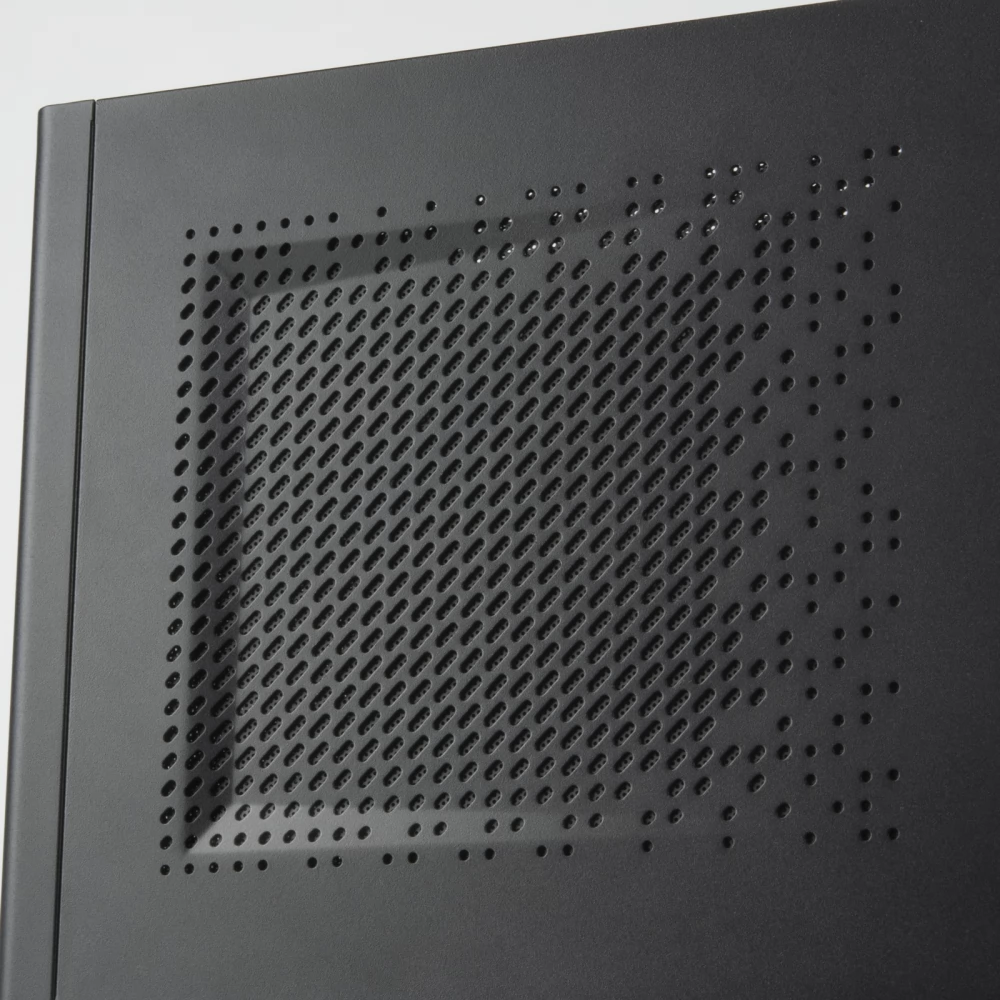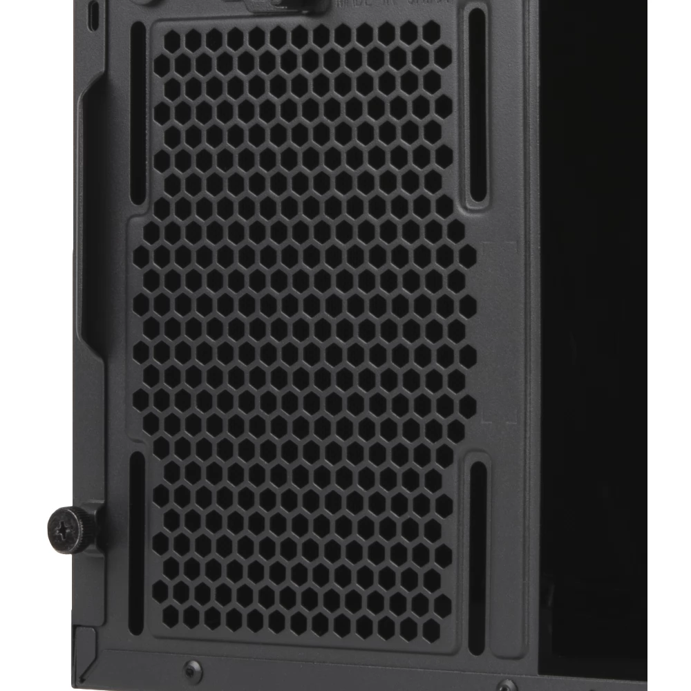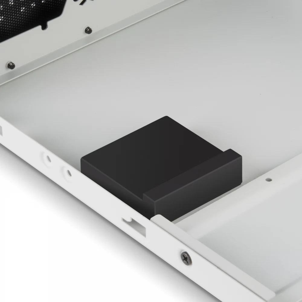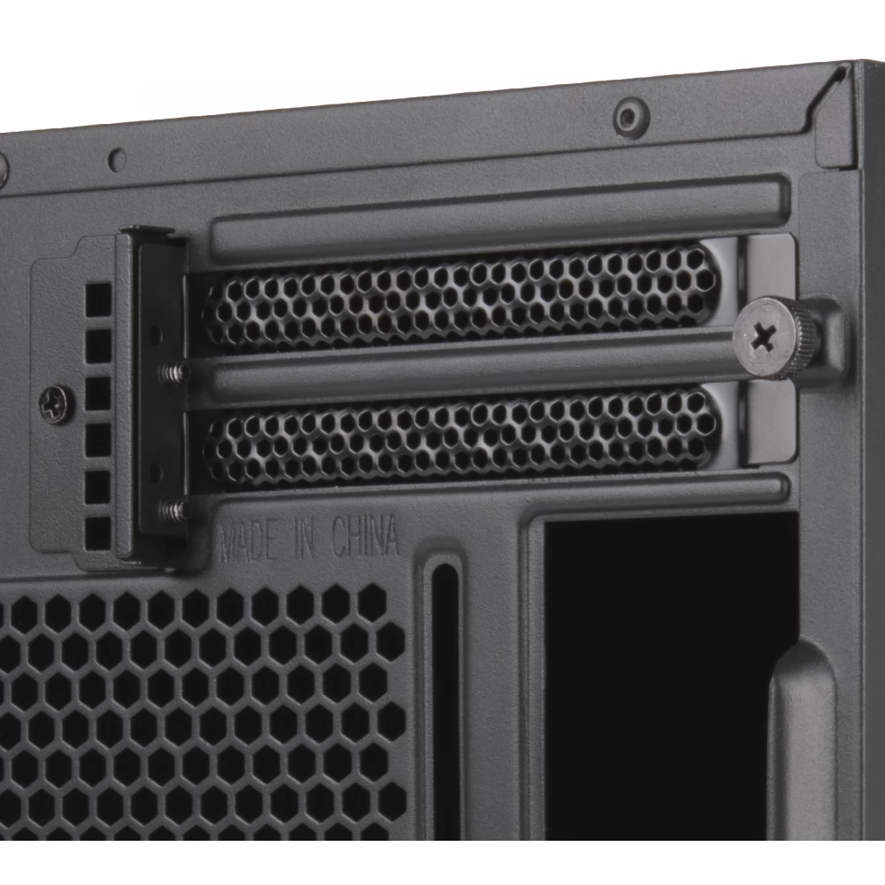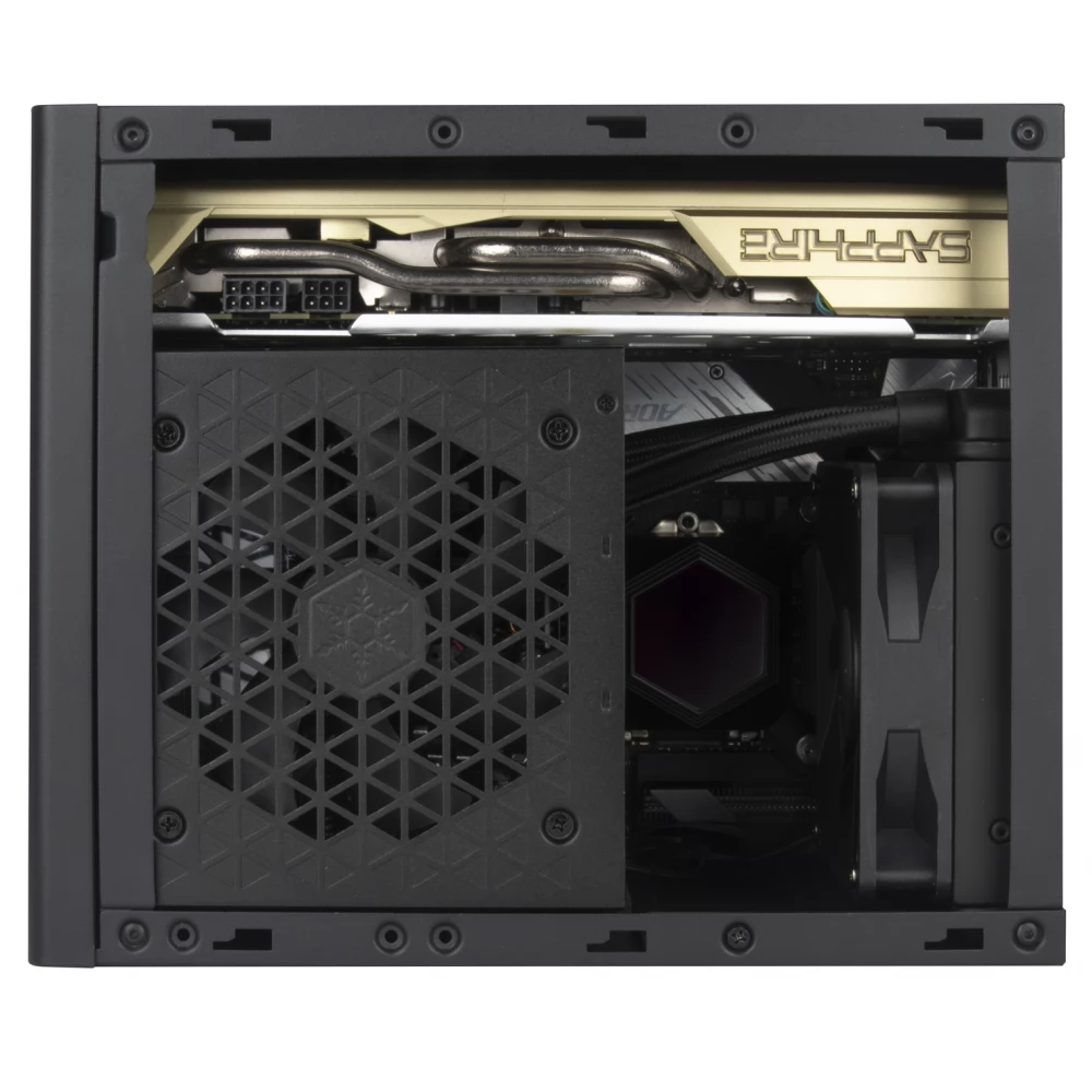Mini-ITX-Gehäuse mit SFX- oder ATX-Stromversorgungsoption. Abhängig von der Größe des Netzteils kann der Prozessorkühler 86 mm (für ATX-Netzteil) oder 172 mm (für SFX-Netzteil) hoch sein.