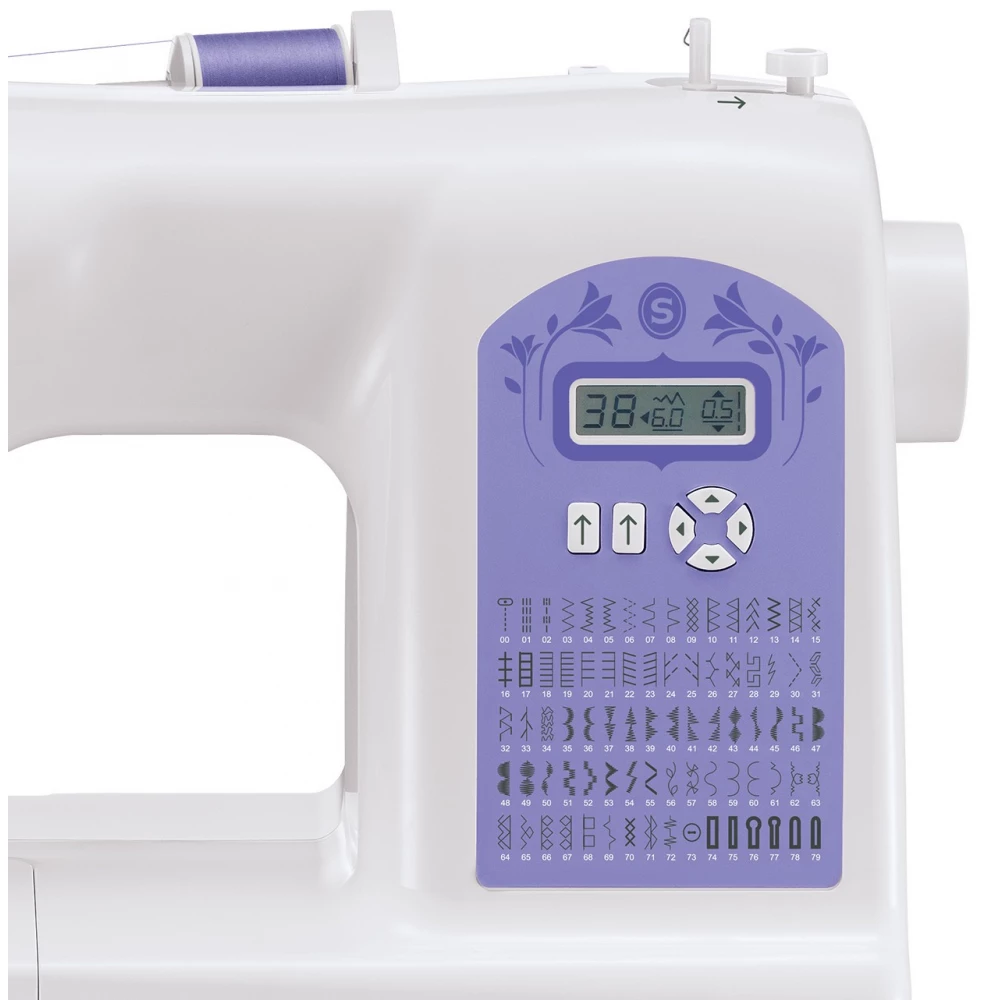 Für das Modell Singer Starlet 6680 80 Stichmuster, einschließlich Dekor- und Elastikstichen. Einstellbare Stichbreite und -länge – Stiche bis zu 6,5 mm breit. LCD-Display an der Nähmaschine. Zubehör mit Tischverlängerung.