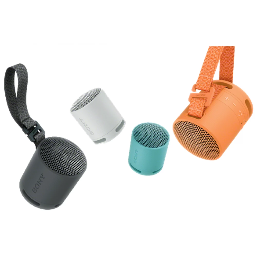 Der SRS-XB100 ist in 4 Farben erhältlich: Schwarz, Hellgrau, Blau und Orange.