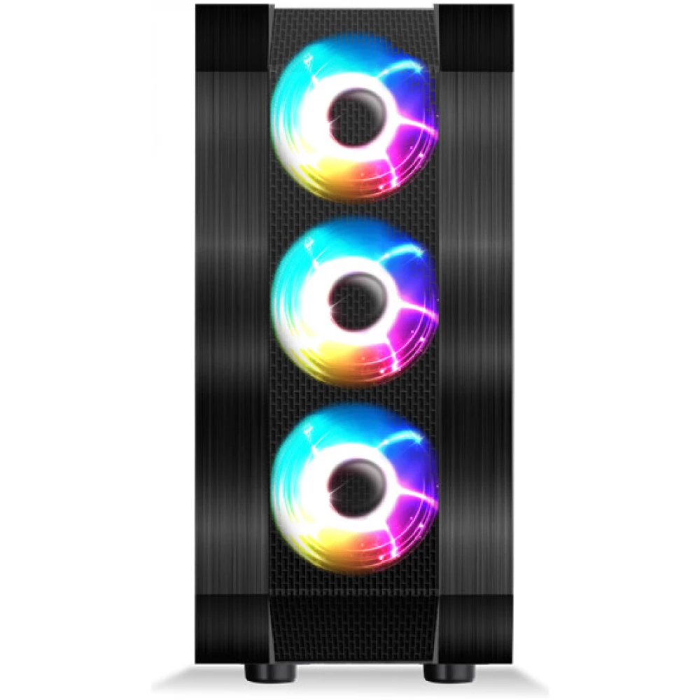 Computergehäuse im Midi-Tower-Design im ATX-Format. mit eingebauten RGB-Lüftern.