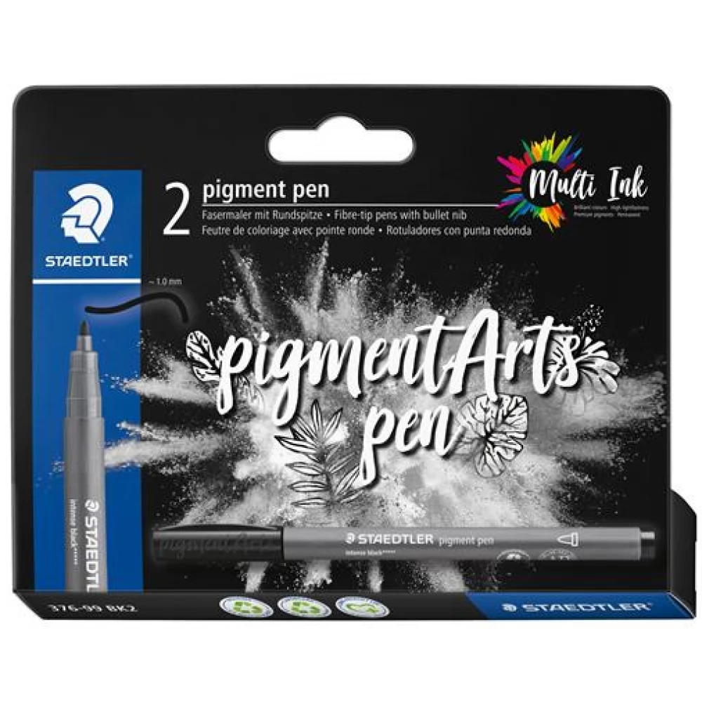 - Die neue „Pigment Arts“-Pinselserie von STAEDTLER mit der einzigartigen „Multi Ink“-Tinte vereint die Vorteile farbstoffbasierter und pigmentierter Tinten: lebendige Farben mit außergewöhnlicher Lichtechtheit für langanhaltende Ergebnisse.